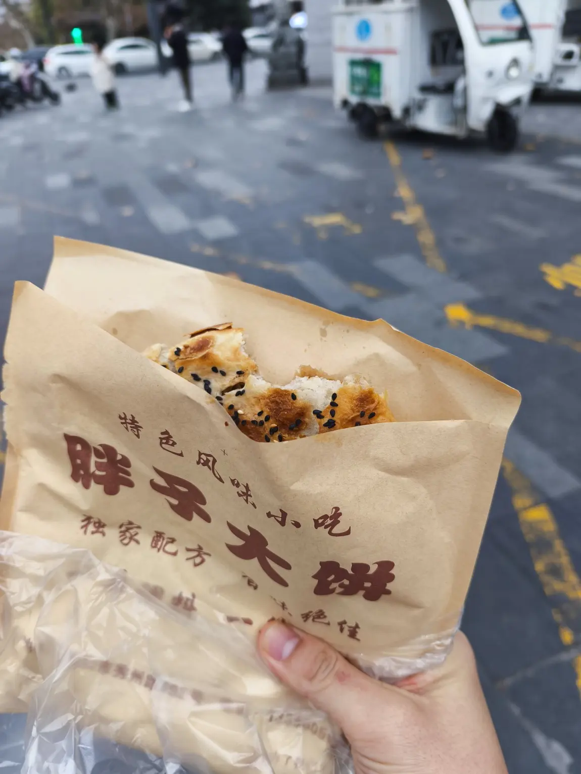 3点半:从南湖打车回停车场,然后开车去西塘古镇。回去的路上看到了一个卖大饼的,买了一个,还以为是锅盔,没想到很好吃而且不是锅盔,馅料很足,叫胖子大饼。