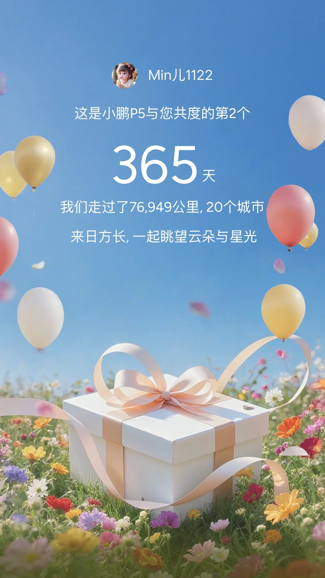 #提车2周年# 从提车时的新鲜感,到2年后的归属感,小鹏P5用7.7万公里,承包了我的日常与远方。通勤时是省心搭档,语音指令秒响应;露营时是全能后勤,外放电+睡眠模式解锁双倍快乐;全家出行时,近1米的后排腿部空间装下满车欢笑。时光不语,里程为证,感谢这台“智能第三空间”,把每一次出行都变成温柔记忆。