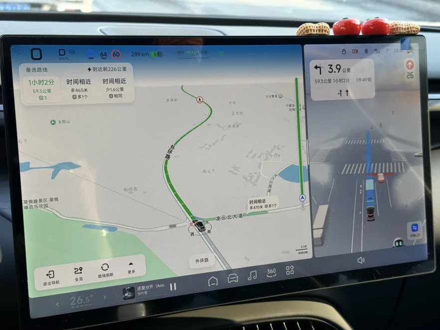 第一次远离家不能每日返程,还好有小鹏一路相伴!全程开启智驾模式,乡道蜿蜒串联着冬日美景,耳边循环着喜欢的歌,窗外是层层叠叠的田野与村落,原本的紧张不安,都被沿途的治愈风光悄悄化解。