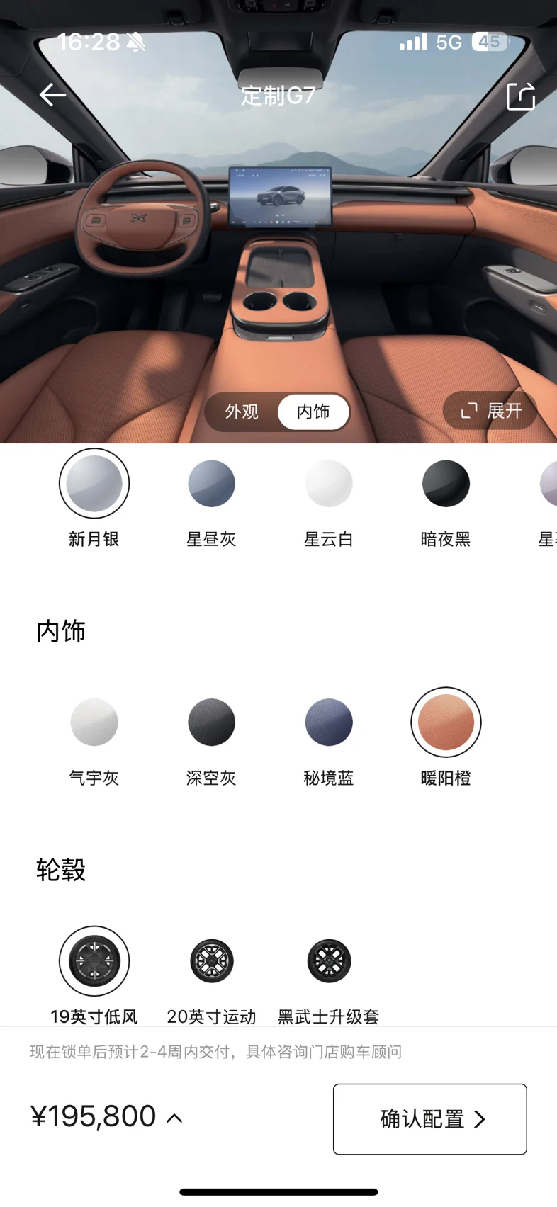 去年这个时候定了小鹏P7+,今年本来没有换车的打算 因为女朋友一句“都在幻想开着增程车出去自驾游的样子了”立马决定现在有免息政策了就买,第二天立马约了试驾,然后等发布会公布价格,价格出来后高于预期,但还能接受。在选择配置时又出了新的难题,我俩一致想选黑色外观,橙色内饰,加零重力座椅。但橙色内饰只有银灰两色可以选择,还不能加零重力座椅,后边还是决定内饰更加重要,外观可以选择改色。在选择第二辆小鹏时也考虑过要不要换其他品牌,但我们更在意续航,小鹏的性价比也是最高的,第一辆p7+我们也很满意,综合考虑还是下定!