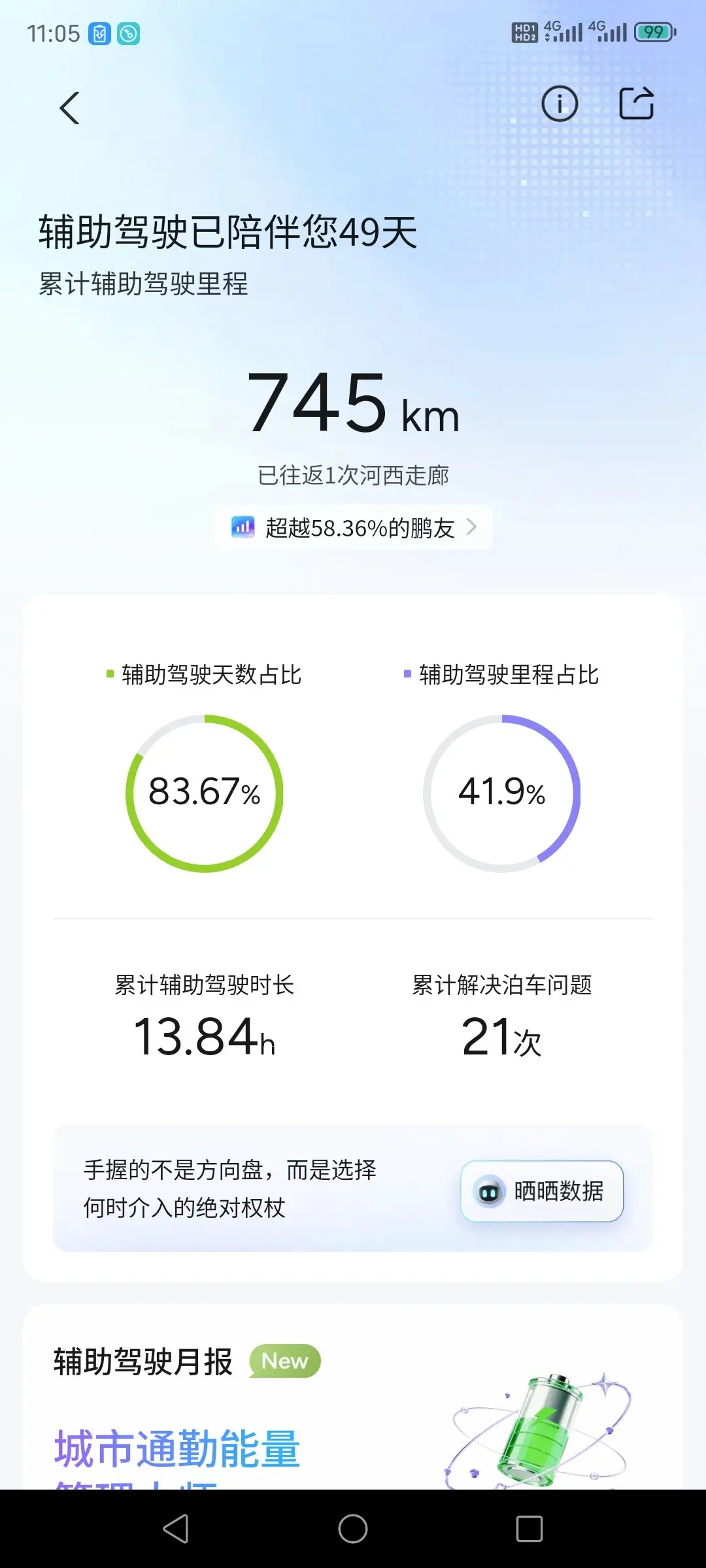 小鹏G9提车快2个月了,我从完全不敢使用智能驾驶到现在基本每天上下班都要使用,是不断的尝试带来的,下面说一下使用心得吧,我一般在快速路段使用,NGP和LCC来回切换使用,NGP 12月升级体验了车位到车位,LCC是过桥过隧道堵车时候不用变道时候比较方便。后面期待更高算力的L4辅助驾驶。