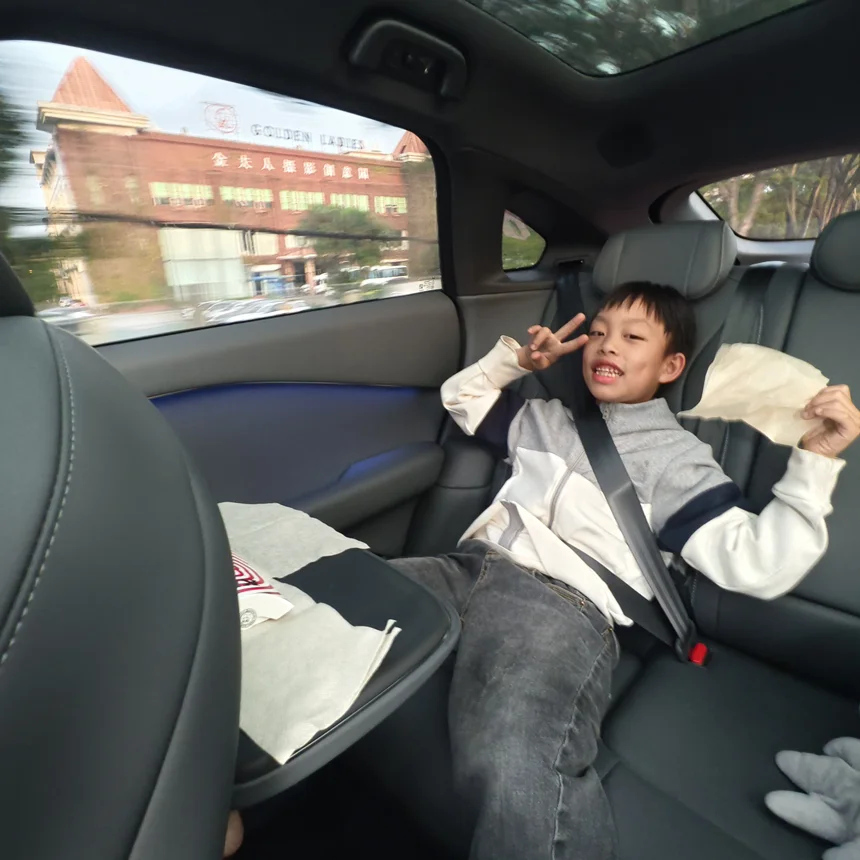 1、今年在P7+的陪伴下,宝贝在车里的可爱瞬间