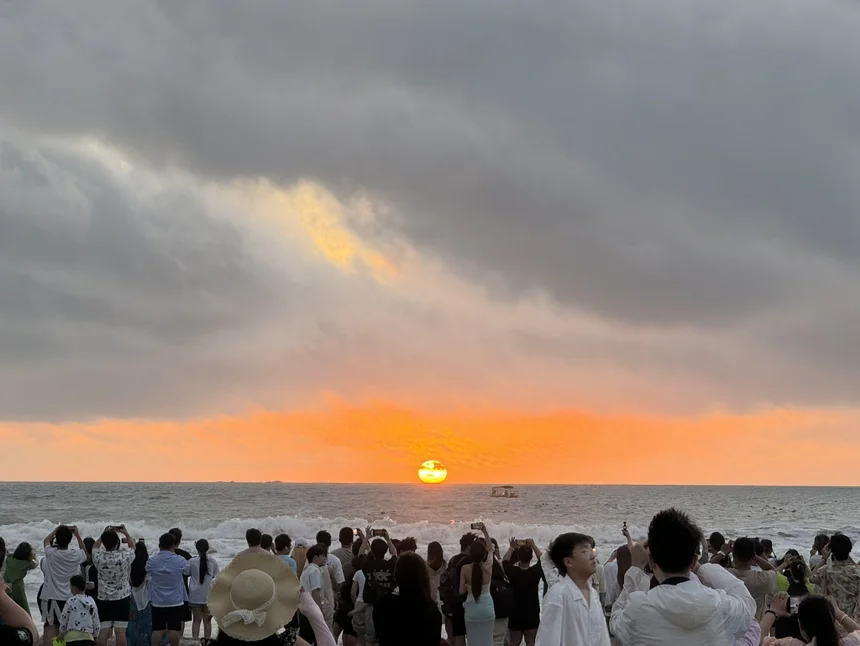早起开车赴海岸候日出,夜色褪去霞光起,朝阳破海腾空,万道金光映浪涛,波光粼粼晃眼,海风送凉,所有早起都值得,满是惊艳与欢喜✨