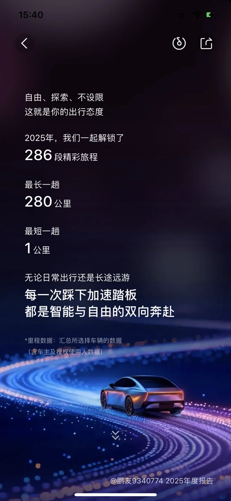下面分享我的 2025 小鹏智能用车报告 截图,这是属于我和 MONA 的年度回忆: