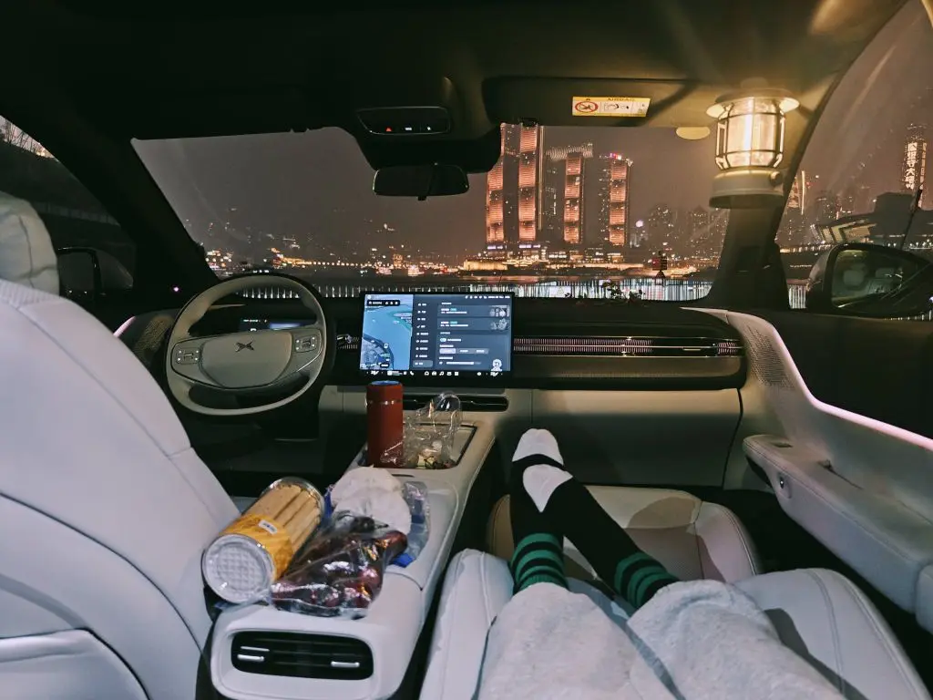 #新年首次出行# 风景不必在远方,自己的城市也很可爱。开着车子,自由自在,像风一样自由,虽然总是梦想着远方,但大多数的日常是近处、是身边、是陪伴我们最多的城市和郊野。每次当我把眼光放到近处,感受到的踏实、温暖、惊喜不亚于千里迢迢追寻的远方。这是小鹏G6城市行的开端,我已经找到一个很好得看夜景、江景、城景的方式,就是把车看,开到能安全停放的美景里,近距离接触野外,在大床房模式下休闲和独处。 我们看到的是重庆的来福士、大剧院和朝天门大桥,城市ip拉满了,在这样的路上通行,建筑似乎就在身旁似乎飞在天上,8d重庆的感觉油然而生。
