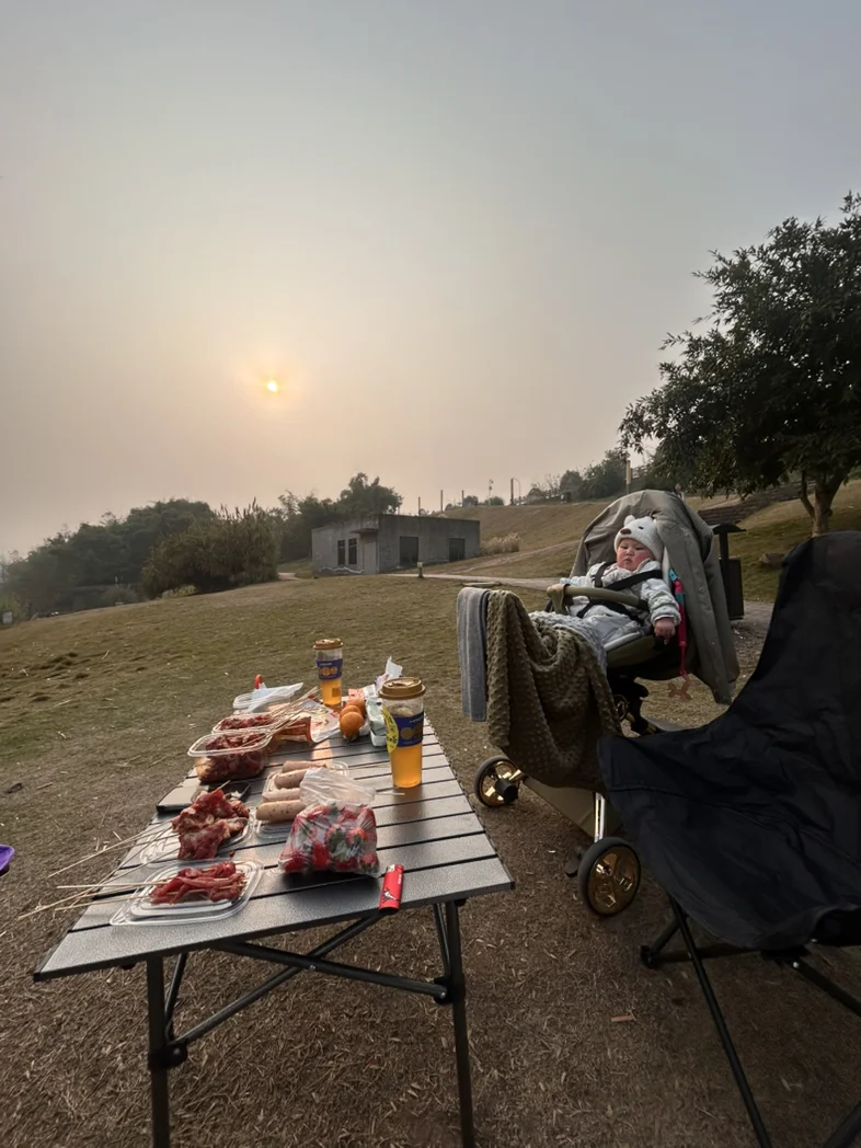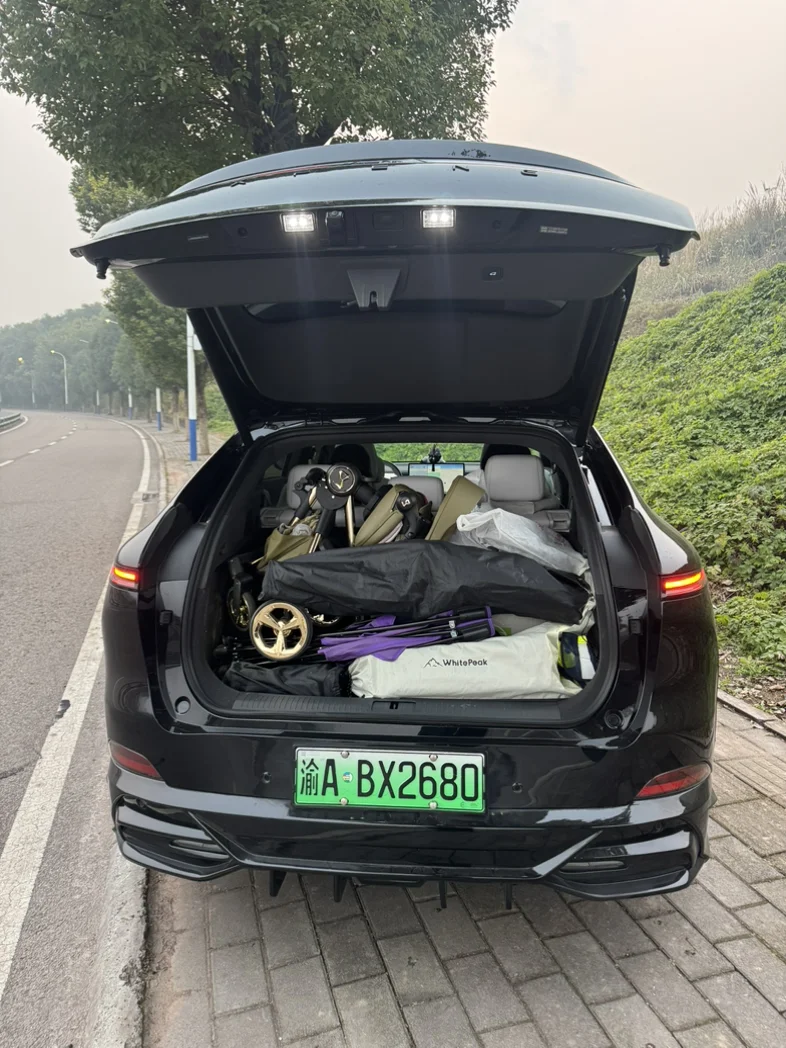 新年第一次带宝宝户外烧烤,小鹏G6后尾箱还是可以装很多,装的下,世界都是你的。