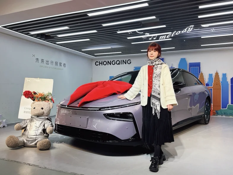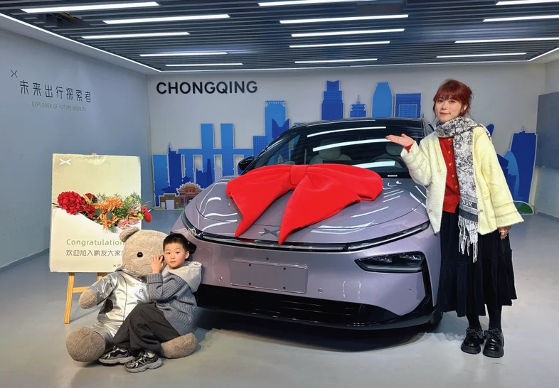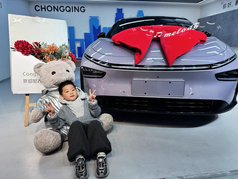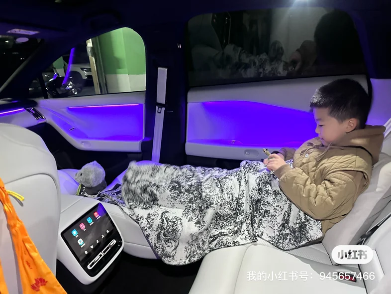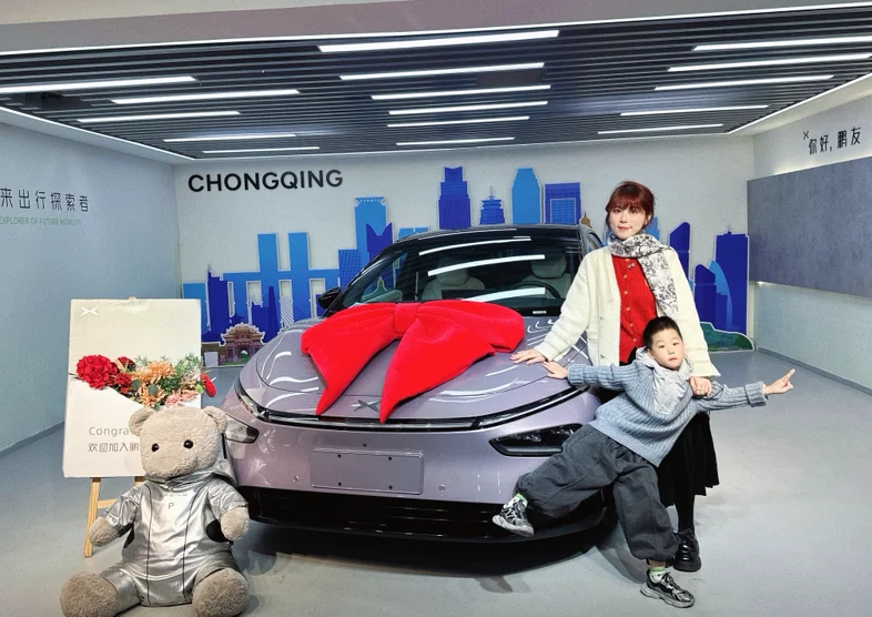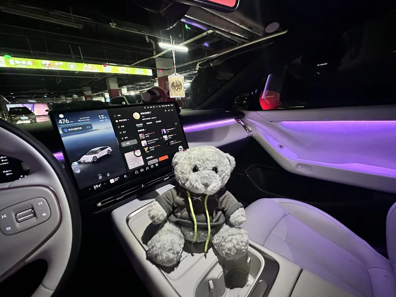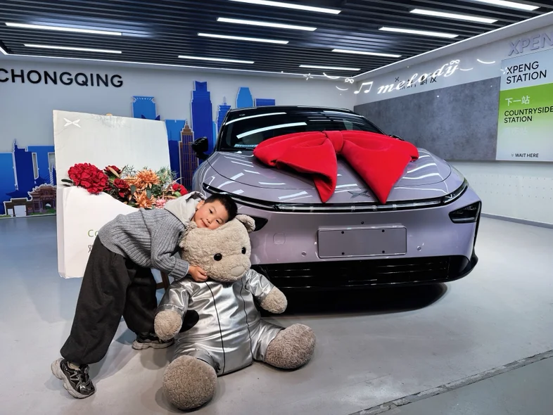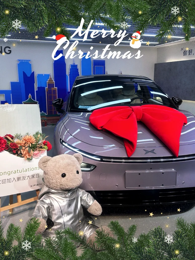 仪式感环节简单却暖心,首先先是介绍了整车的使用和功能等,差不多小一个小时,专员耐心演示着“你好小P”的语音交互,我随口说“打开主驾加热”,座椅立刻传来暖意,响应速度快得惊人。因为是第一次开电车,所以还是需要学习一下。然后专员提前准备了小鹏定制花束和小熊玩偶,还主动帮我们拍了全家福。围着车绕圈打量时,我特意摸了摸车门边角和轮毂,专员笑着解释:“每辆新车到店都会过三重检测,运输中容易蹭到的位置我们都反复检查过,您放心~”打开车门的瞬间,母婴级生态环保座舱的质感超出预期:Nappa打孔真皮座椅触感柔软,没有丝毫新车异味。
