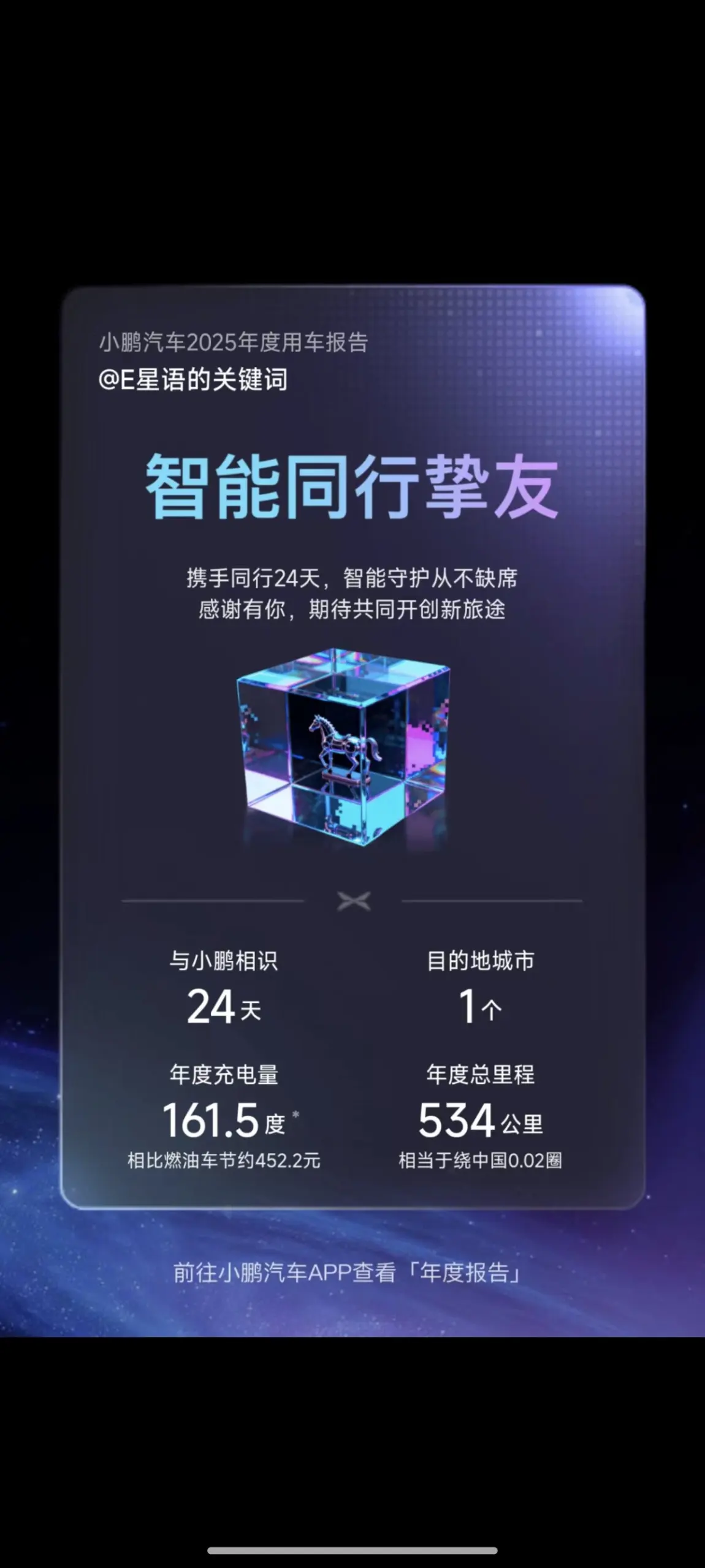 #定格我的精彩瞬间# 2025年最值得一提的当然是买了g6。历经两个月,从不停看车试驾到确定款式抢置换券,最后异地下单验车提车。还有第一次开着g6带娃出行,前往家附近的景区草地露营爬行。圣诞那天,报名参加鹏友回家活动,见识了不一样的航天汽车,小鹏机器人。第一次前往售后服务中心,预约了安装遥控钥匙,享受小鹏暖冬关怀,售后人员不仅帮忙安排了免费洗车,检查轮胎,加玻璃水以及帮忙安装脚垫。2025年,感谢小鹏g6带来的精彩时间,期待2026。