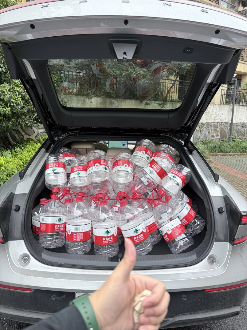 #定格我的精彩瞬间# 这就厉害了,提车之后就干去了萧山那边贴膜,然后还去干去了太子尖,丝毫没有把家用车当家用的想法。某个周末闲着无聊去了上海的特斯拉工厂去踩场子,为了试验这个后备箱到底能不能装,塞了满满一车农夫山泉水瓶子