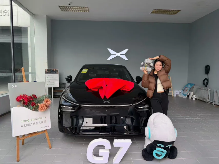 定🚗到提车一 周左右,都特别顺利,20万级预算,能把智驾、空间、舒适和补能效率做到如此均衡的,也就小鹏G7了!从此手握方向盘,心怀大世界,愿我的“智能伙伴”陪我穿越城市烟火,解锁山川湖海,每一次出发都有科技与温暖相伴🌟,4S店内服务人员服务特别周到,业务办理特别顺畅,值得点赞👍