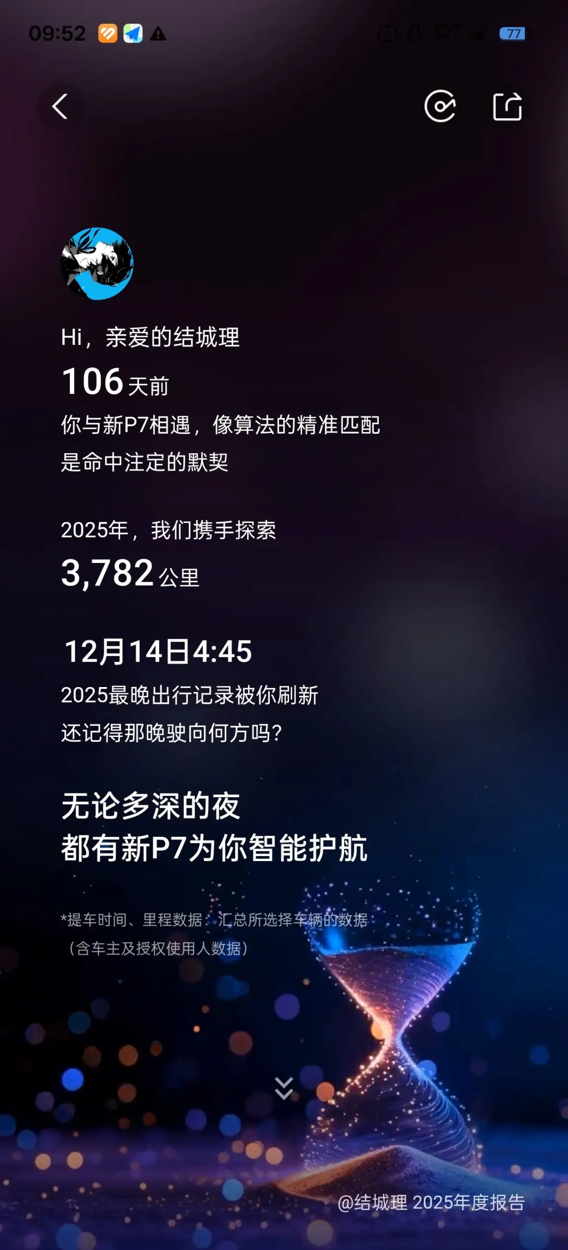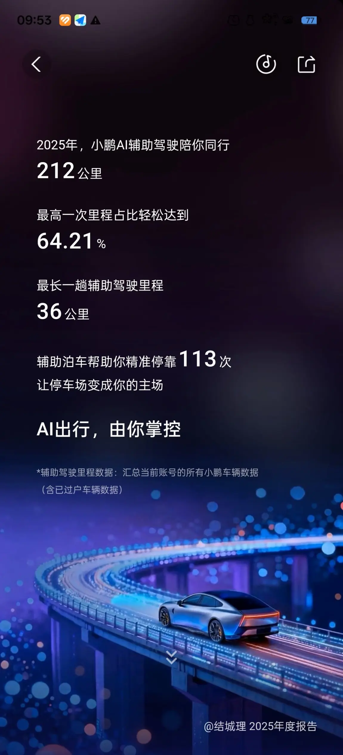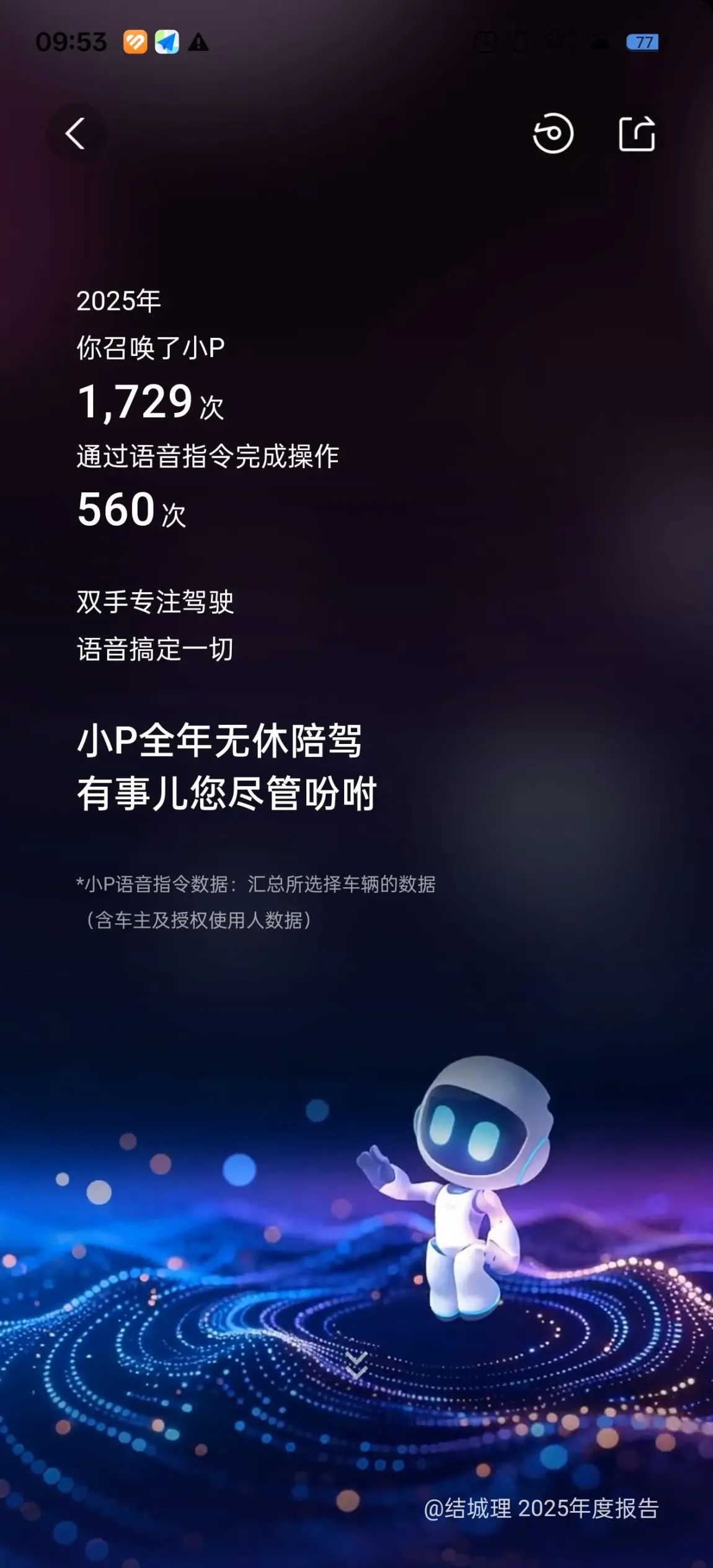 这一年,它彻底成了我上班路上的“快乐搭子”。以前通勤是煎熬,现在是享受。最爽三点:1. 堵车不烦了:NGP在环线和堵车时自己跟车,解放了双脚,我能听听音乐、看看风景。2. 成本几乎为零:家里谷电3毛一度,每月通勤电费不到一百块,以前加油心都在滴血。3. 上车就有好心情:冬天提前手机开空调,冬天提前加热座椅。说一句“你好小P,去公司,播放每日推荐”,所有事都安排妥了。当然,高峰期能耗会高一些,续航打折多一点,但完全够用。每天这往返一两个小时,因为它,从负担变成了我调整状态的缓冲带。