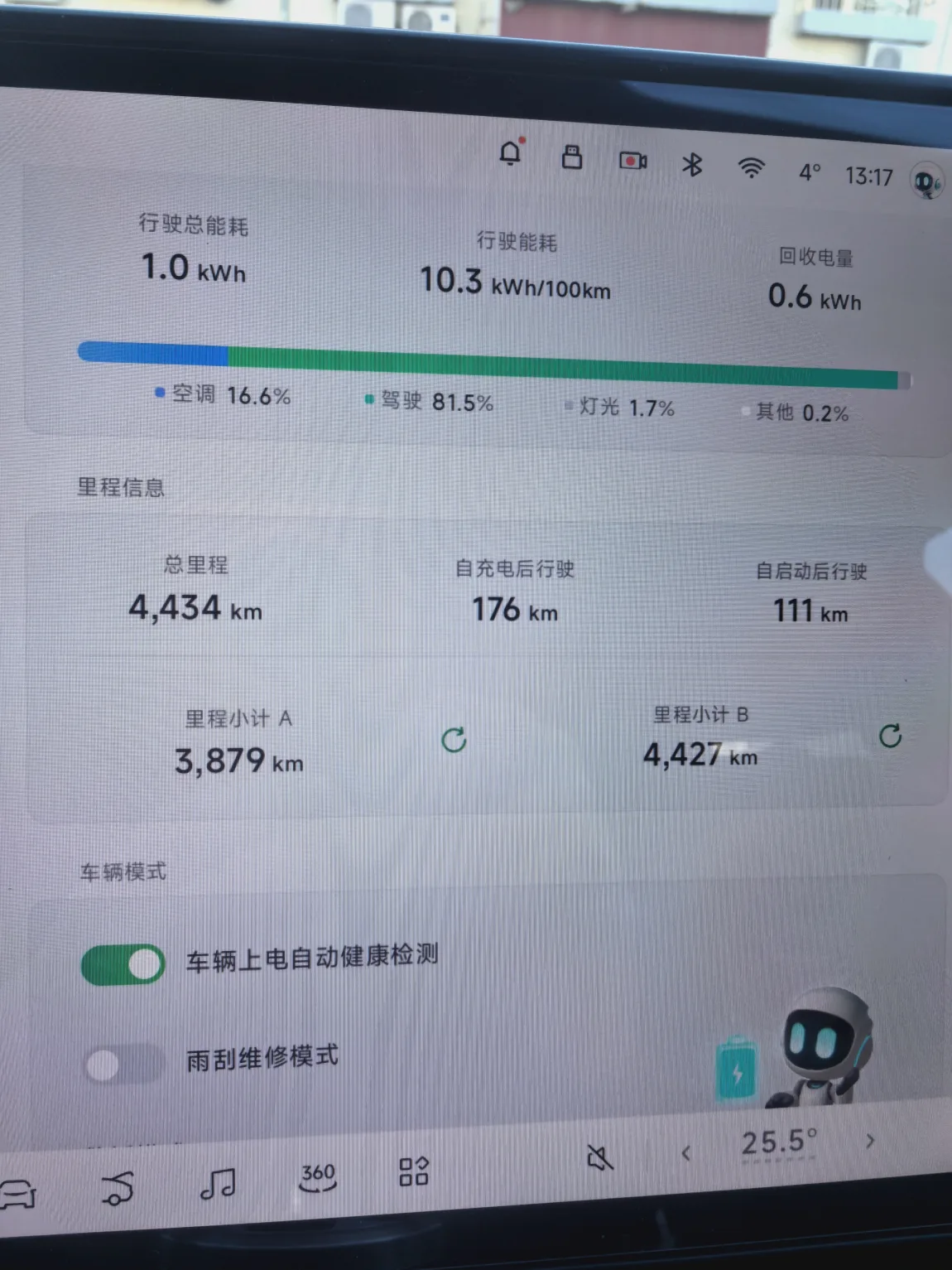 2025年12月16号提的车,到现在跑了正好一个月,现在目前跑了不到5000公里,每次充电剩个百分之20-30电量,充到97左右大概也就30来分钟吧,总体来说还不错。