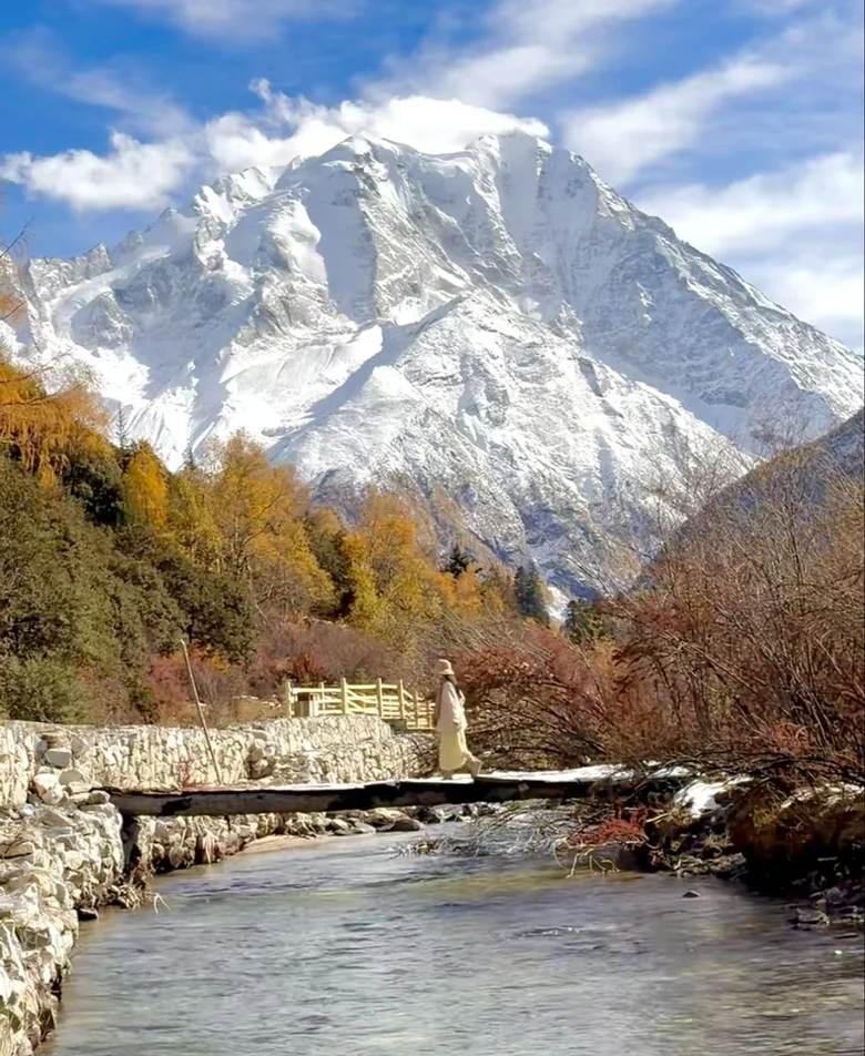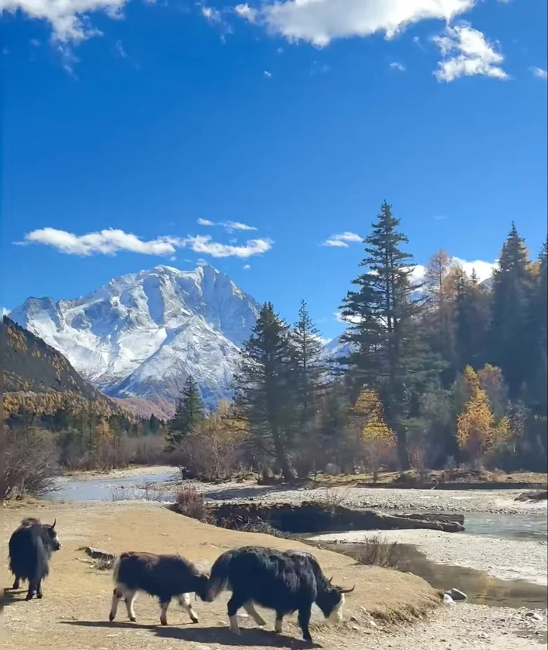 也是轿车🚗就能到的雪山小溪,能看到雅拉雪山全景,四处有牛羊,景色绝美。这是看雅拉雪山的绝美位置