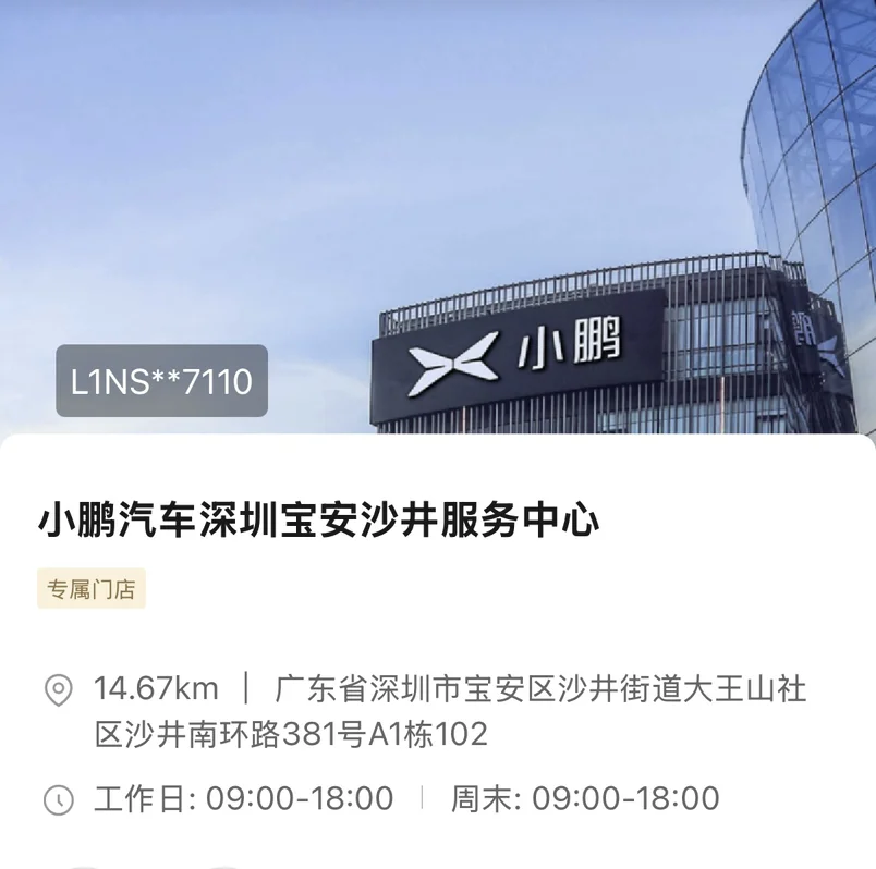 这个小鹏深圳沙井服务中心必须得夸!从预约到交车的全程体验都堪称满分,尤其要重点表扬服务顾问曹康义,专业度和贴心度直接拉爆!对于车辆任何问题都贴心解答的程度实在是太令人满意了👍还贴心传授好多用车小知识!各种小问题都认真解答!!!上哪找到这么用心的员工!!!真是太棒了!!!