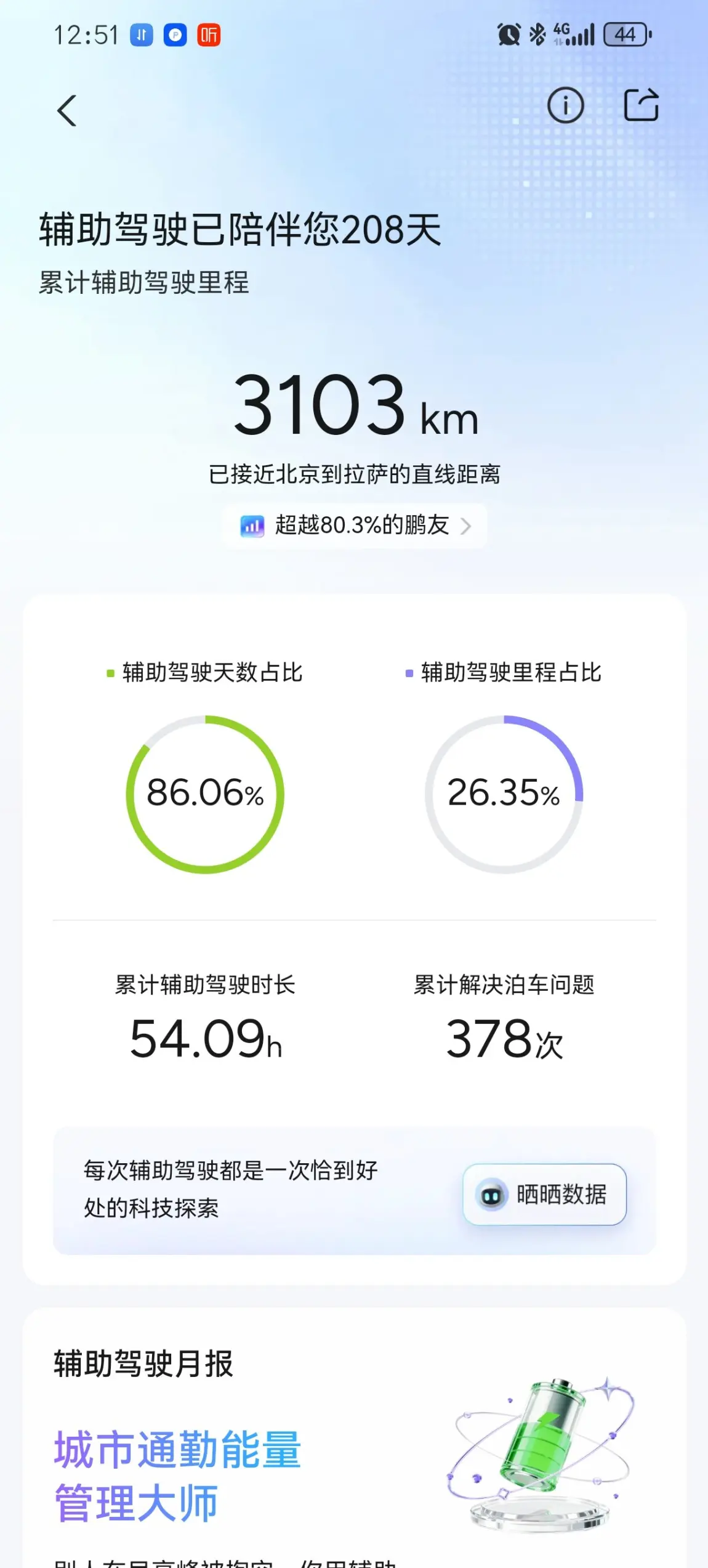 #定格我的精彩瞬间# 25年6月入手G9,作为我的通勤搭子,陪我跨城上班,每天往返于绕城高速,单程35公里,智能驾驶让我的通勤之路不再枯燥,从前深感疲惫的路程也变得从容不迫。偶尔带家人出游自驾,看山川河流与落日余晖,陪我登山涉水。国庆期间自驾汉中安康,感受秦巴山水之美。返程遇高速堵车,走秦岭山路,穿越秦岭的盘山路,九曲十八弯来形容也不为过。驾驶了近六个小时才抵达西安鄠邑,在去鄠邑的小路上还遇到了山体落石,道路被阻,掉头原路返回,路上又劝行了好多辆走小路的车友,一路惊险好在安然返回。人生的意义到底是什么?或许不同的人有不同的见解,在我看来,有限的生命里能和最亲的人长情陪伴并力所能及的有益于社会更加的美好也算是不枉此生。