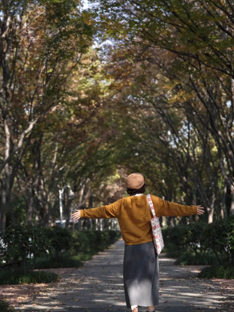 - 秋日公园🍂太出片!金黄落叶铺成地毯,张开双臂跑起来,感觉自己是偶像剧女主~