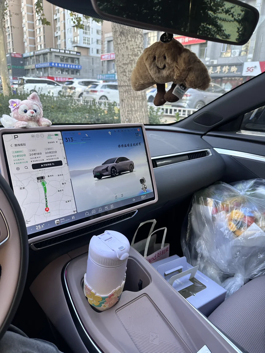 淘了一堆软乎乎的靠垫、奶fufu的香薰,还有铛铛专属的安全座椅。把灰白内饰填得满满当当,妈妈笑我“把杂货铺搬车上了”,可只有我知道,这是属于我们的移动小窝🛋️
