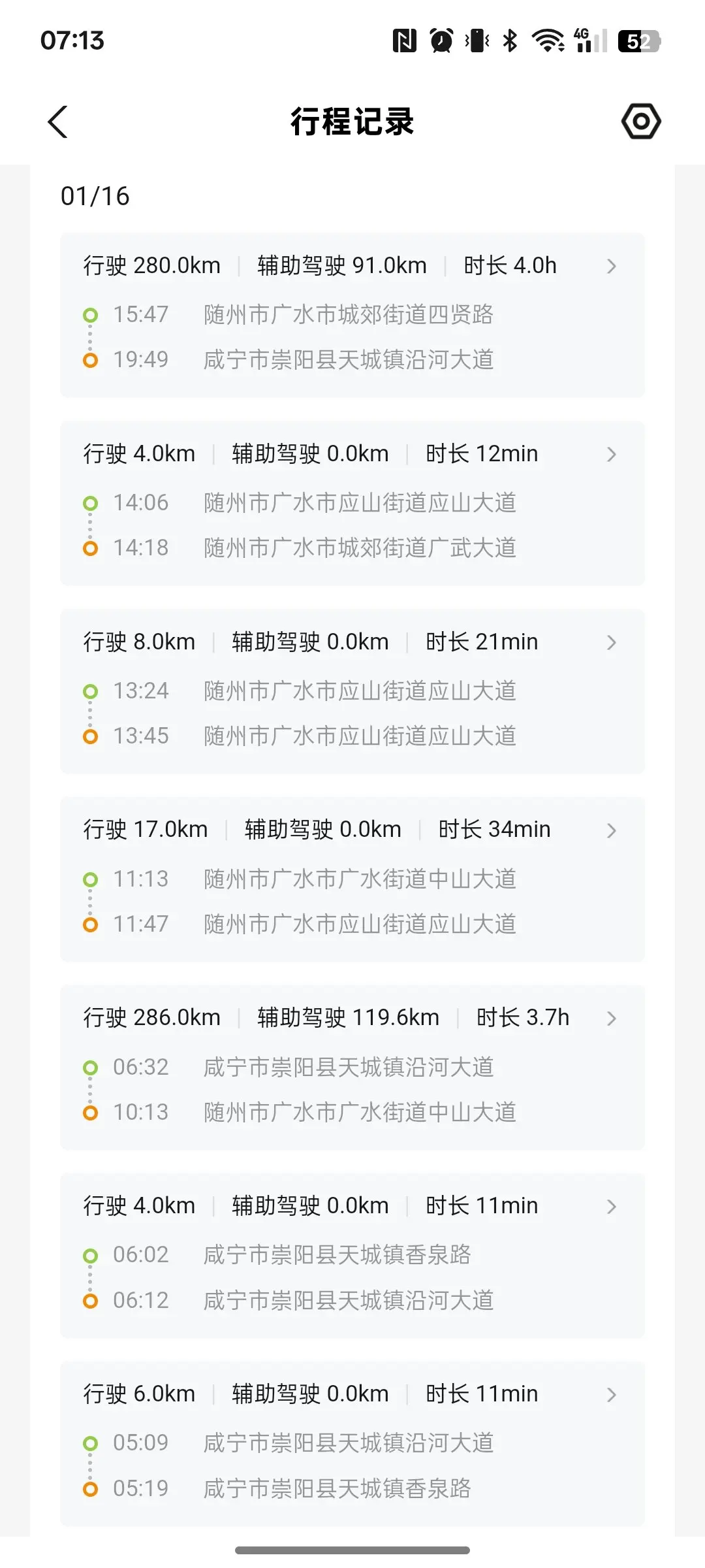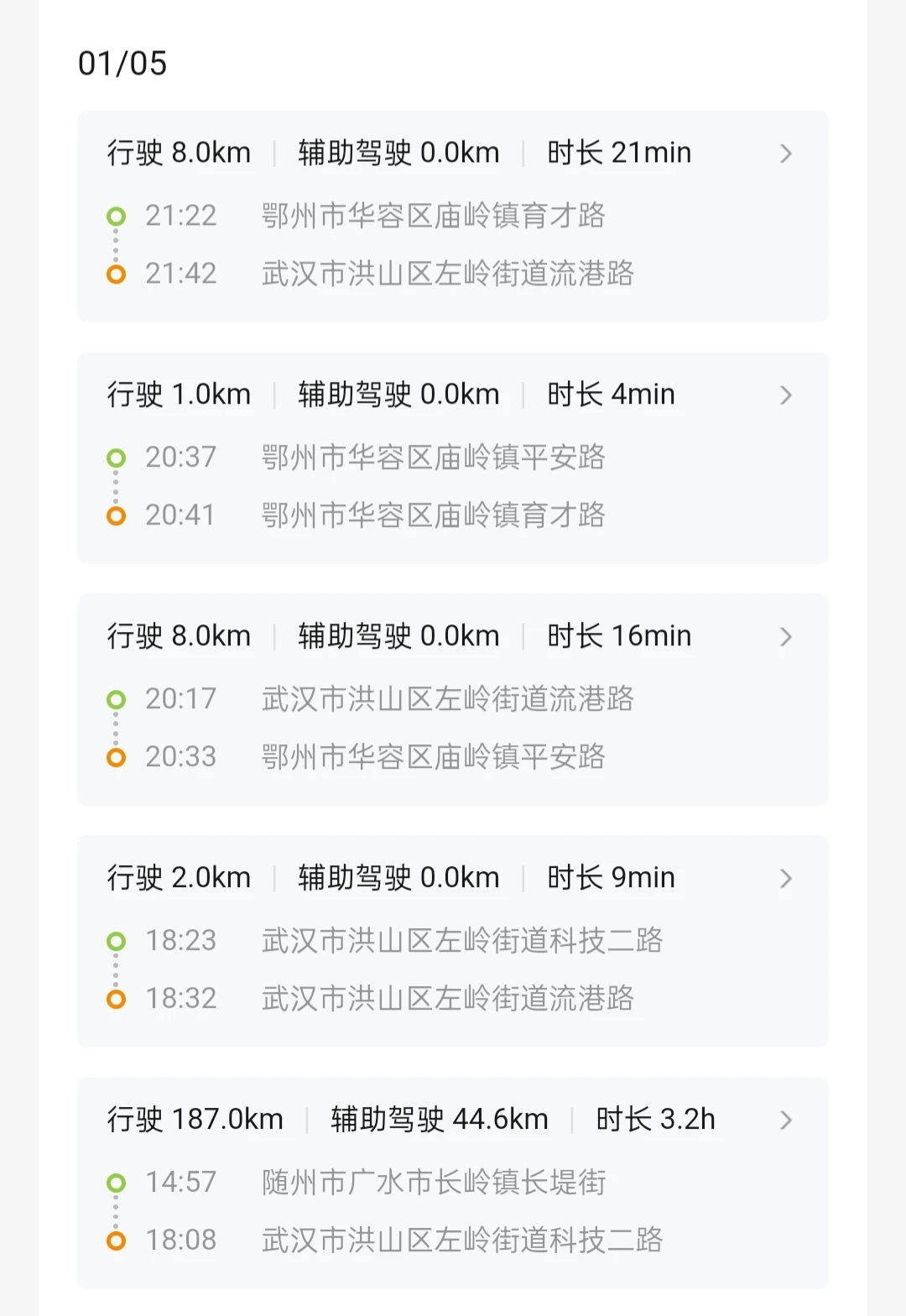 第二张:是1月5日,从随返程武汉,大家仔细看3张图,我都用了智能巡航,从最初不敢使用,到现在用的越来越多,也越来越熟练,随时关注,有问题随时接手即可,解放脚,因为长期保持一个姿势开车容易脚麻和抽筋的,安全第一。(智能巡航非常好用)