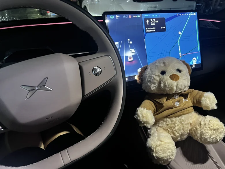 P2️⃣-P3️⃣:3号马上冲去提车啦,提车碰上大暴雨,阴天室内真的很难拍好看,就不怪交付的直男拍照技术了,抽到了喜欢的陪伴小熊🐻,也拿到绿本咯,一步到位,顺利把车开回家