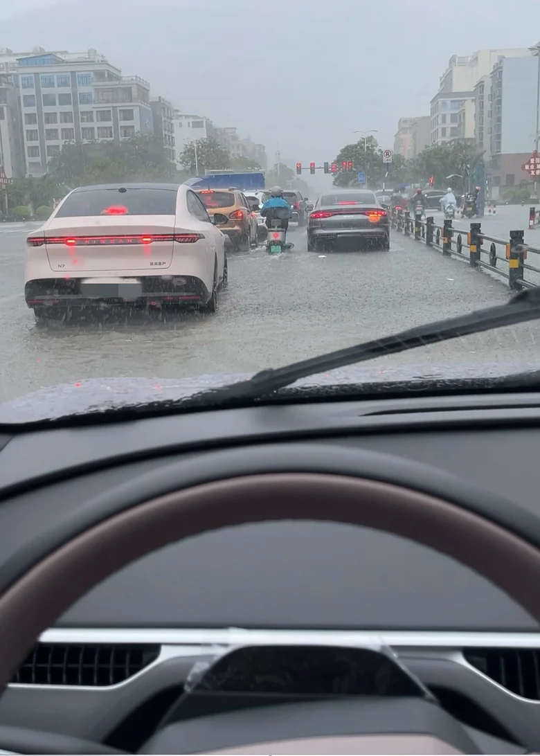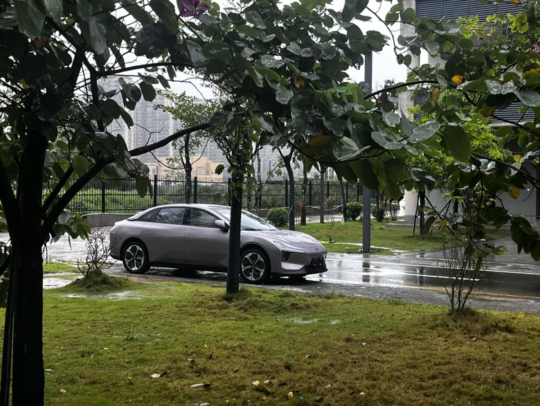 P4️⃣:提车回家第二天,碰上了第25号台风🌀海鸥,还没上牌的小紫就先接受暴风雨的洗礼了,路口积水不敢上前只能远远的等灯,绿灯之后也是忐忑不安开过去的