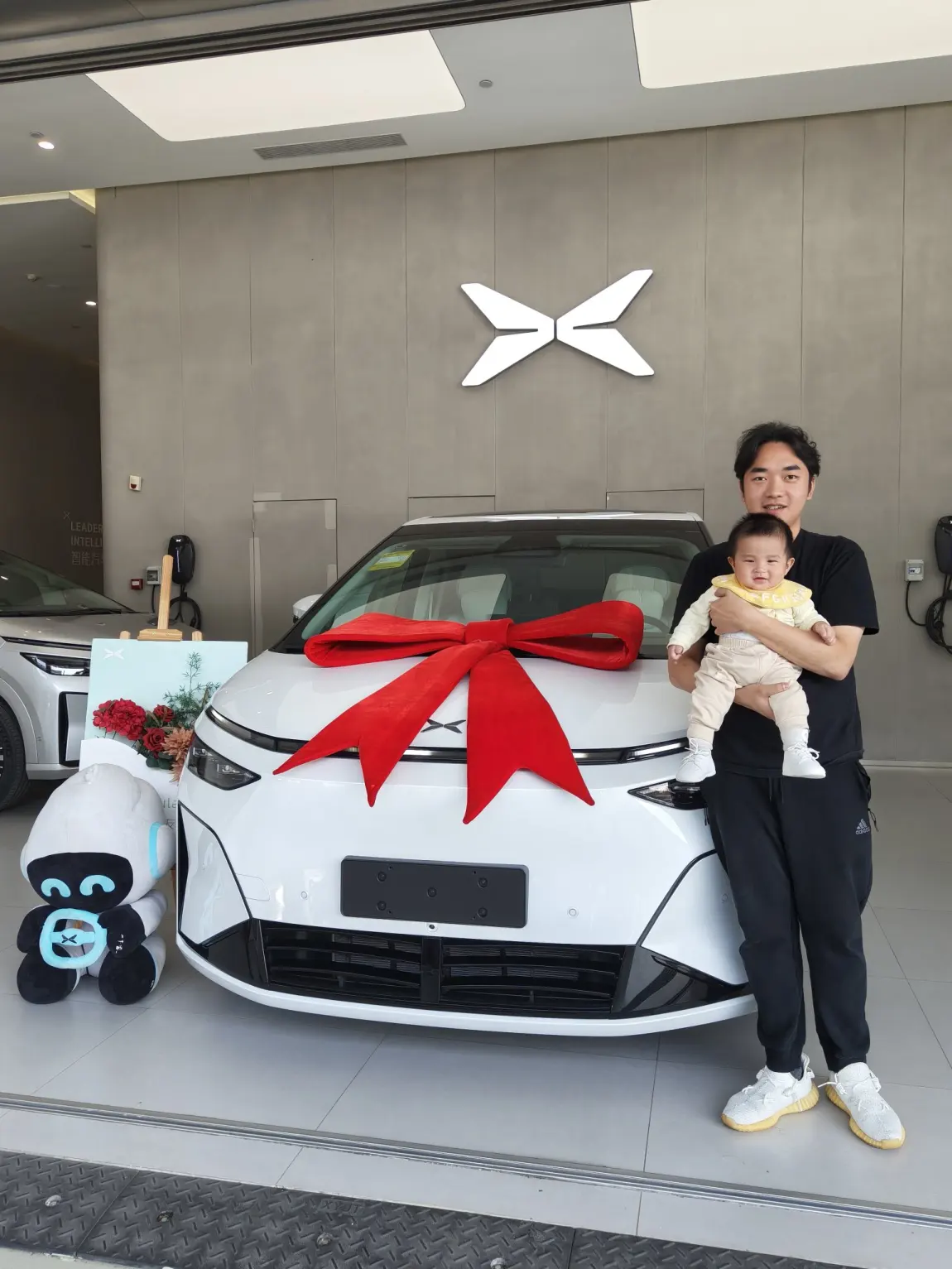 #我的提车作业# 小鹏x9增程提车啦~~为了少爷精挑细选的专属宝宝巴士终于提车啦12月14号晚上8点锁单,1月14号配车,1月16号提车,虽然等了一个月,但起码不用等太久~谢谢销售小哥和交付小哥的细心引导和讲解,下单到提车交付体验非常好~发布会一出就看中,虽然隔了很久才订车错过了99抵5000定金的时候,但也不后悔,非常好非常实用~🎉萌娃提车现场太治愈!🎀小白车配大红花超吸睛~👶宝宝坐车头萌化啦!💐旁边玩偶也来凑热闹~#小鹏汽车 #小鹏X9超级增程首批车主火热提车