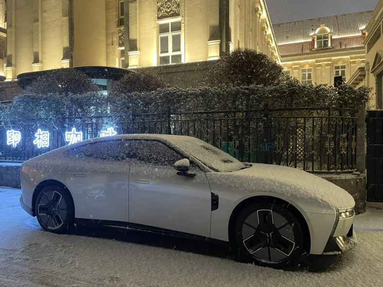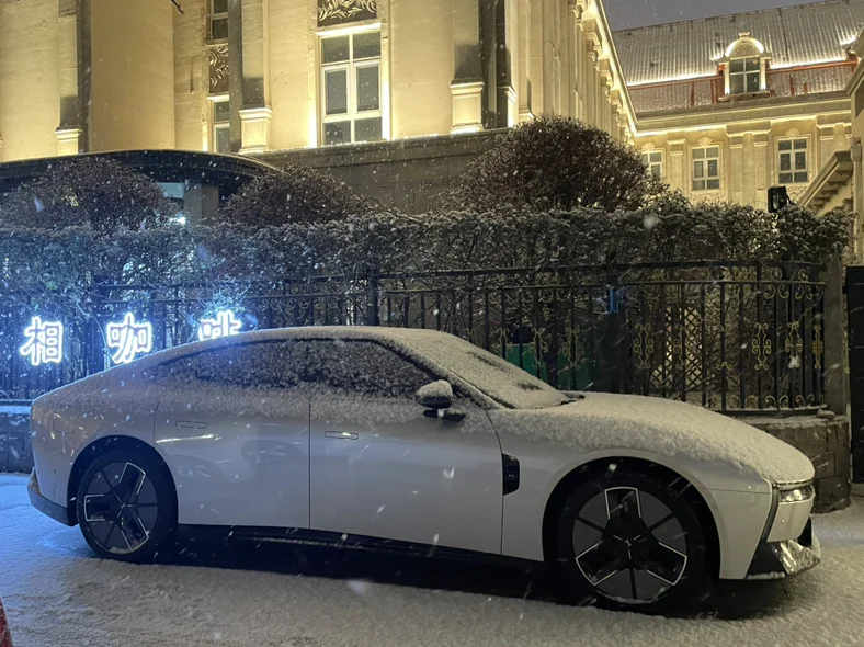 发现一辆小鹏新P7,雪景加持,科技感满满