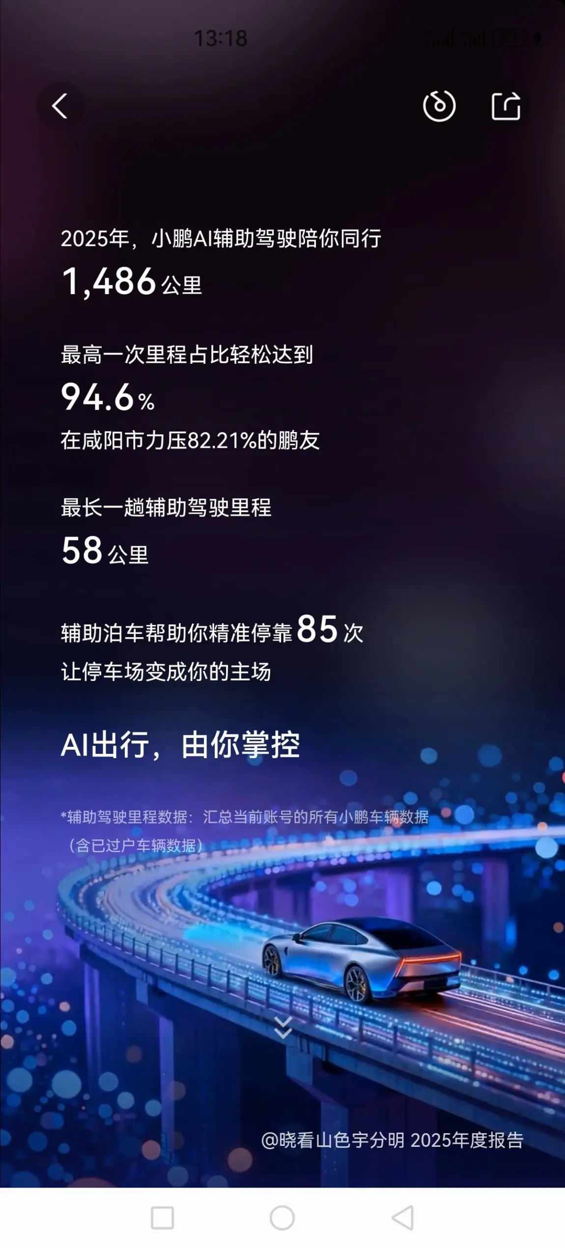 #定格我的精彩瞬间# 2025年8月1日,我与小鹏结缘,认识了许多小鹏友,加入了这个大家庭。虽然只有短短的五个月,但他已带着我们全家走过了6000多公里的路程。最享受它智能驾驶NGP的体验,可以一边开车,一边和孩子们聊天,也可以随时关注孩子的表现,享受一曲曲优美的轻音乐,与家人们谈谈途中的轶事,感受着小鹏汽车给我生活带来的惬意! #小鹏汽车# 朋友圈