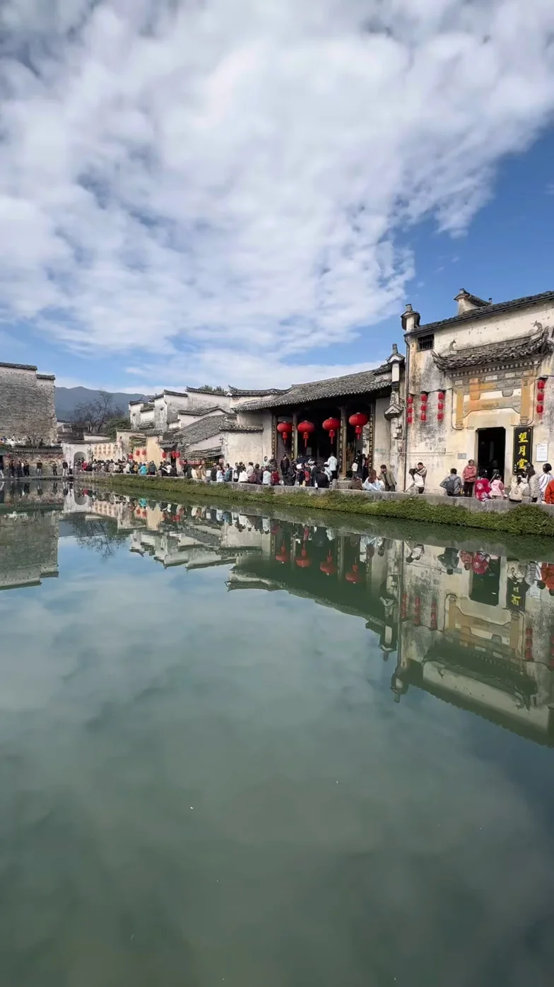 沿着青石板路逛到傍晚,炊烟从马头墙上升起,整个村子浸在暖黄的灯光里。坐在湖边发呆,看锦鲤游过水面,所有的浮躁都被这水乡温柔抚平。