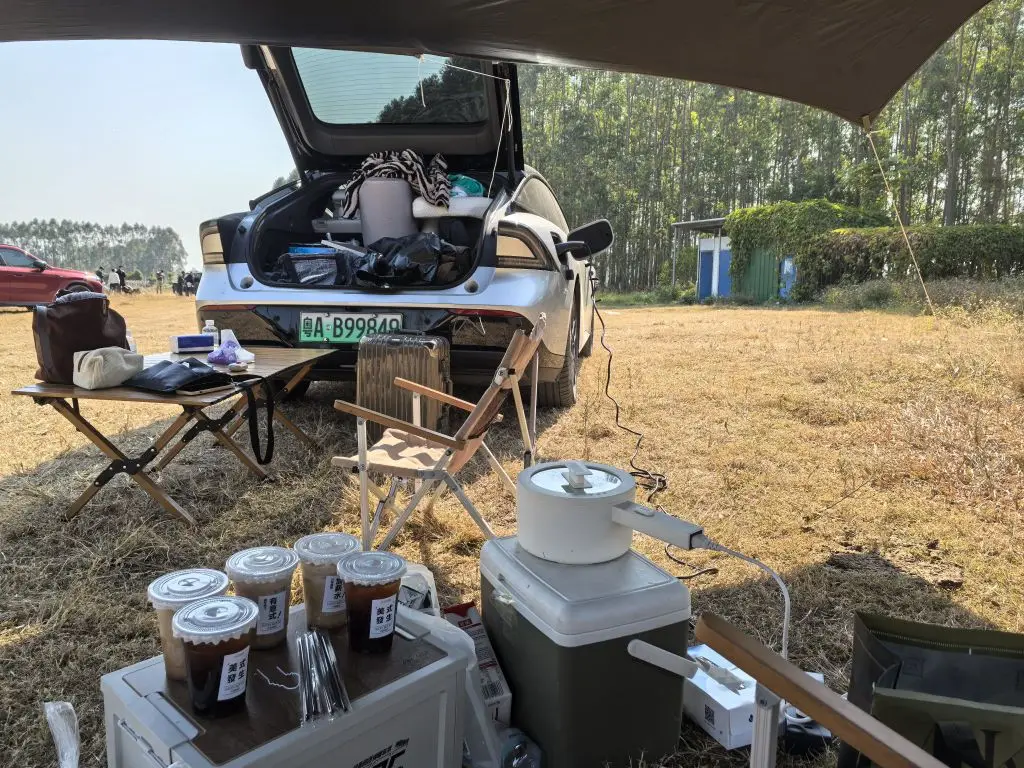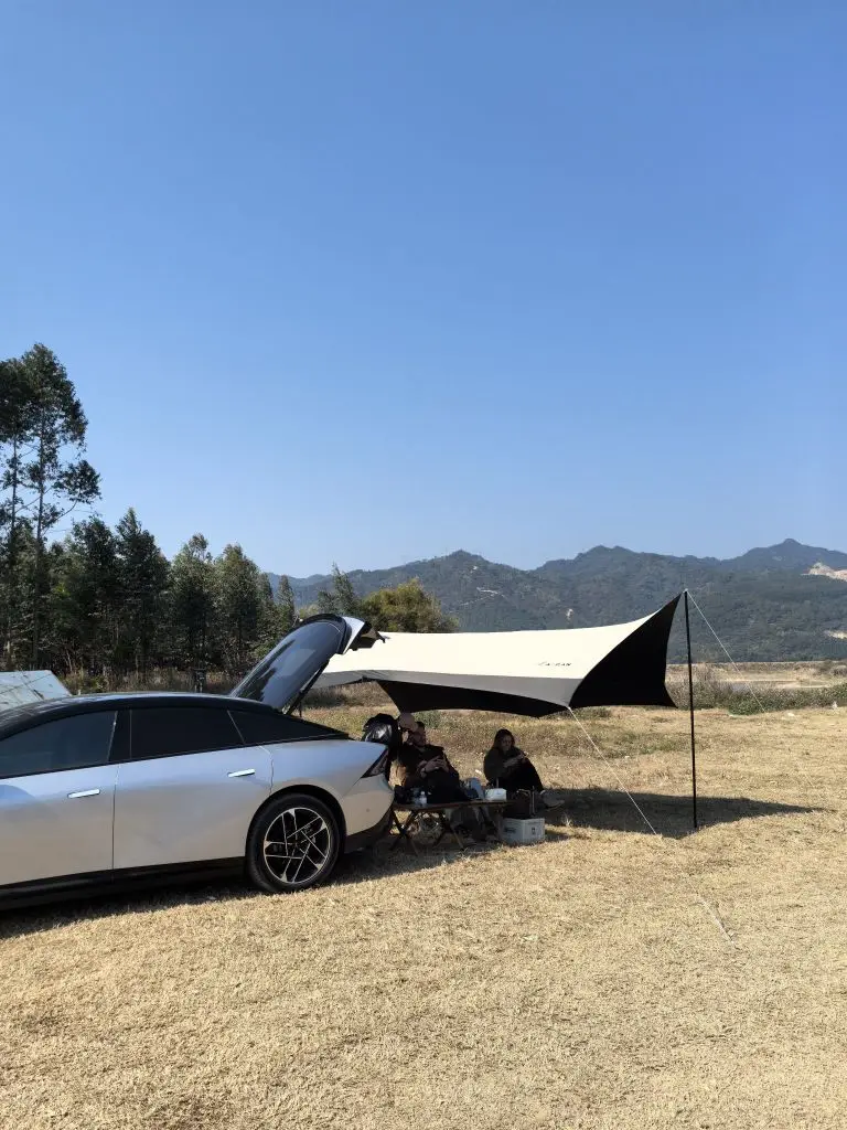#新年首次出行# 2026年第一次长途,来回200公里,电耗4人满载,全程高速,都是大概13-14电耗,居然送给我的工作,山上,江边,P7+通过性无可挑剔,牧马人能去的地方,P7+也跟上了,而且别人要带移动电源,我不需要,我直接外放电,做咖啡,给模特化妆用电,手机无人机充电,等等,都非常实用!
