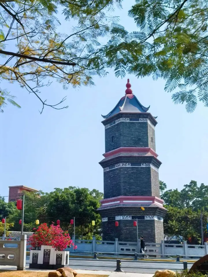 临走前特意去看了文阁塔。这座清代古塔在蓝天的映衬下格外庄重,砖石上的纹路还留着岁月的痕迹。站在塔下,我想起开着G6穿梭在古巷里的场景——一边是百年古塔,一边是智能座驾,就像道滘这座小镇,在传统与现代的融合里,长出了新的生命力。