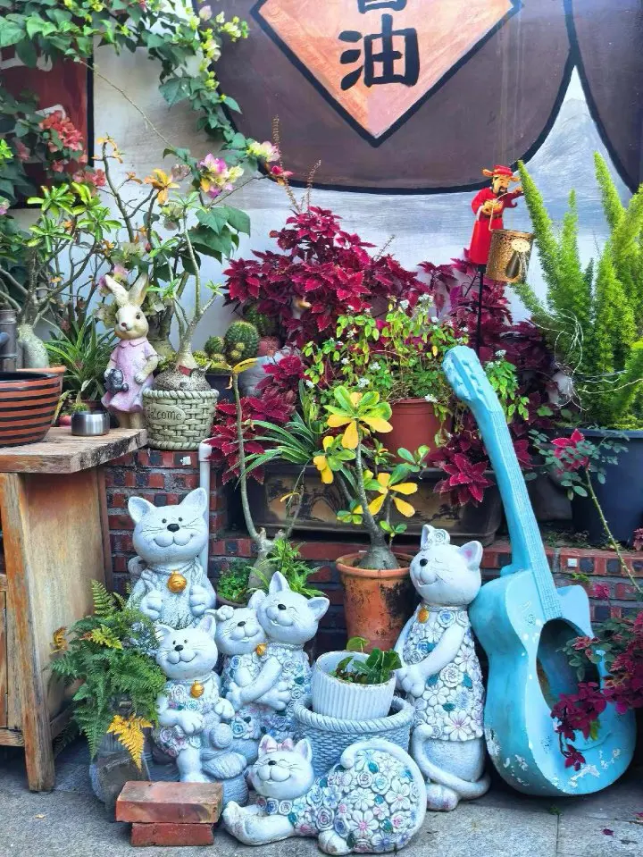 我在一家摆满猫咪雕塑的小店外停留了很久,阳光穿过树叶在地上洒下光斑,那一刻真的觉得,老房子和新故事的碰撞,就是道滘最迷人的地方。