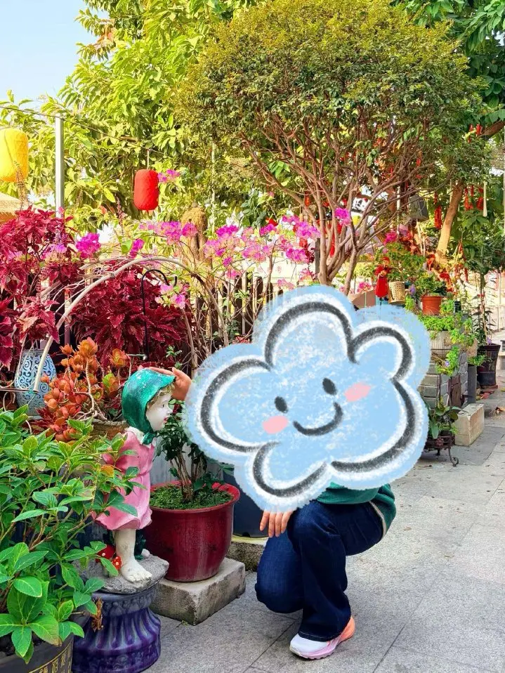 饭后沿着河边散步,白墙黛瓦的老屋被改造成了文艺小店。有的门口摆着复古竹椅和纸灯笼,有的爬满三角梅,还有一面红砖墙被鲜花瀑布铺满,随手一拍都是氛围感大片。