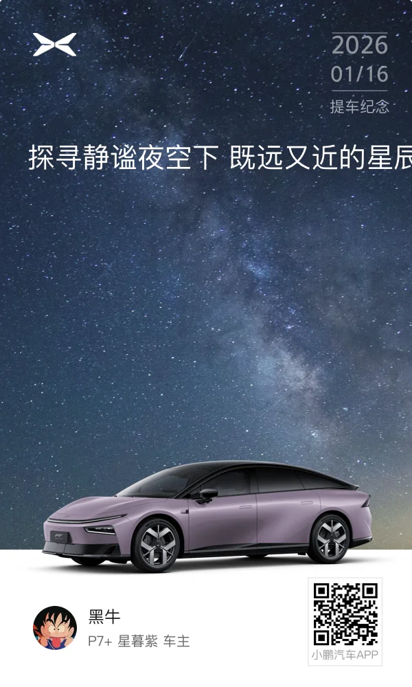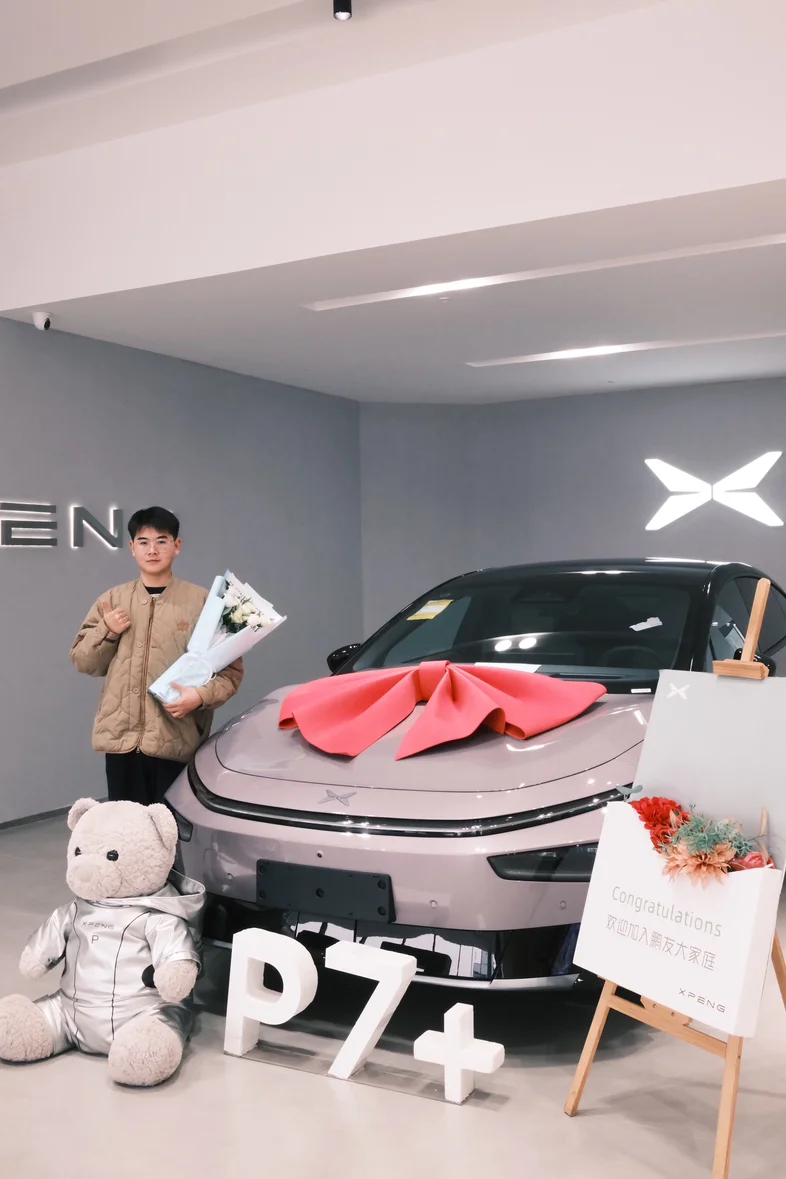 从订车到汽车只花了一周时间,从我的小甲壳虫换到小鹏p7+,这毋庸置疑是我人生的一大步,以后它会风雨无阻的等我。高颜值、长续航,也恭喜自己入住“鹏友”家庭!
