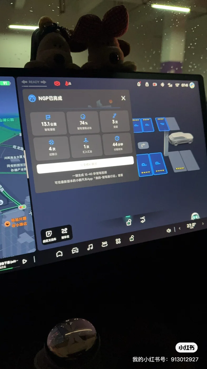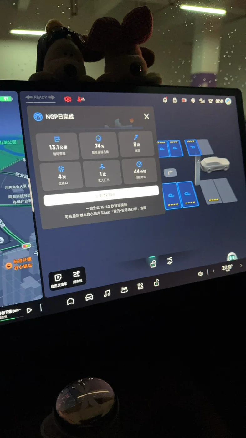 这一年里,NGP 成了通勤标配 —— 今天刚跑完 13.1 公里的智驾路段,74% 的路程都交给车自己控,变道、过路口比我稳多了,44 分钟的行程全程解放双手,下车还能一键生成智驾视频存纪念~