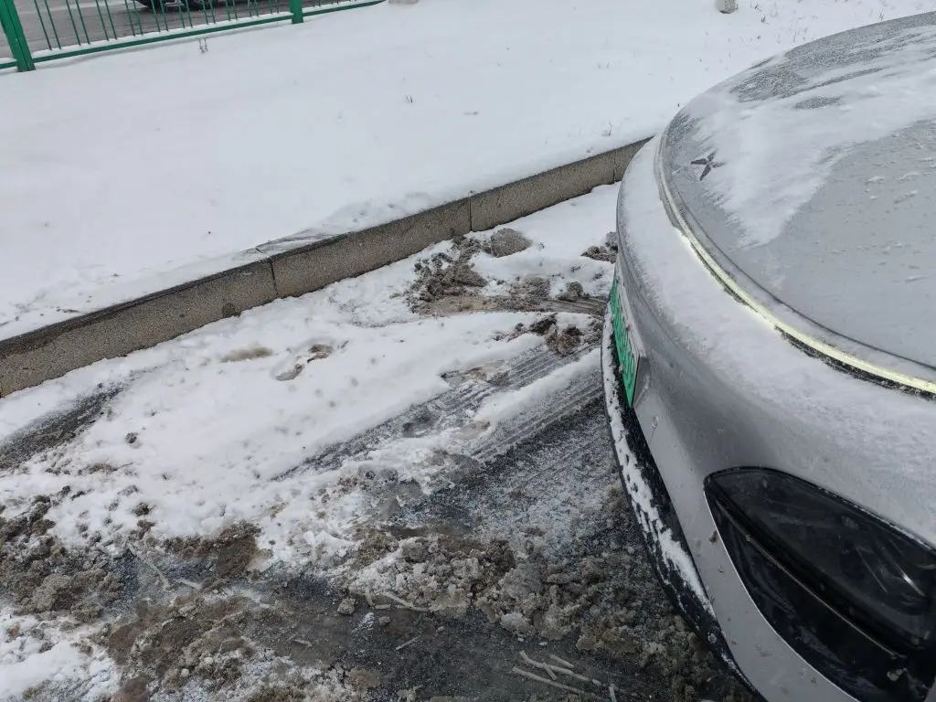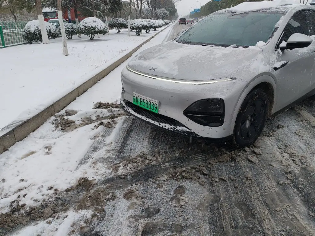 雪天,可怜了我的G6,撞到路牙石了,幸好周边没有车,后驱真的好滑呀