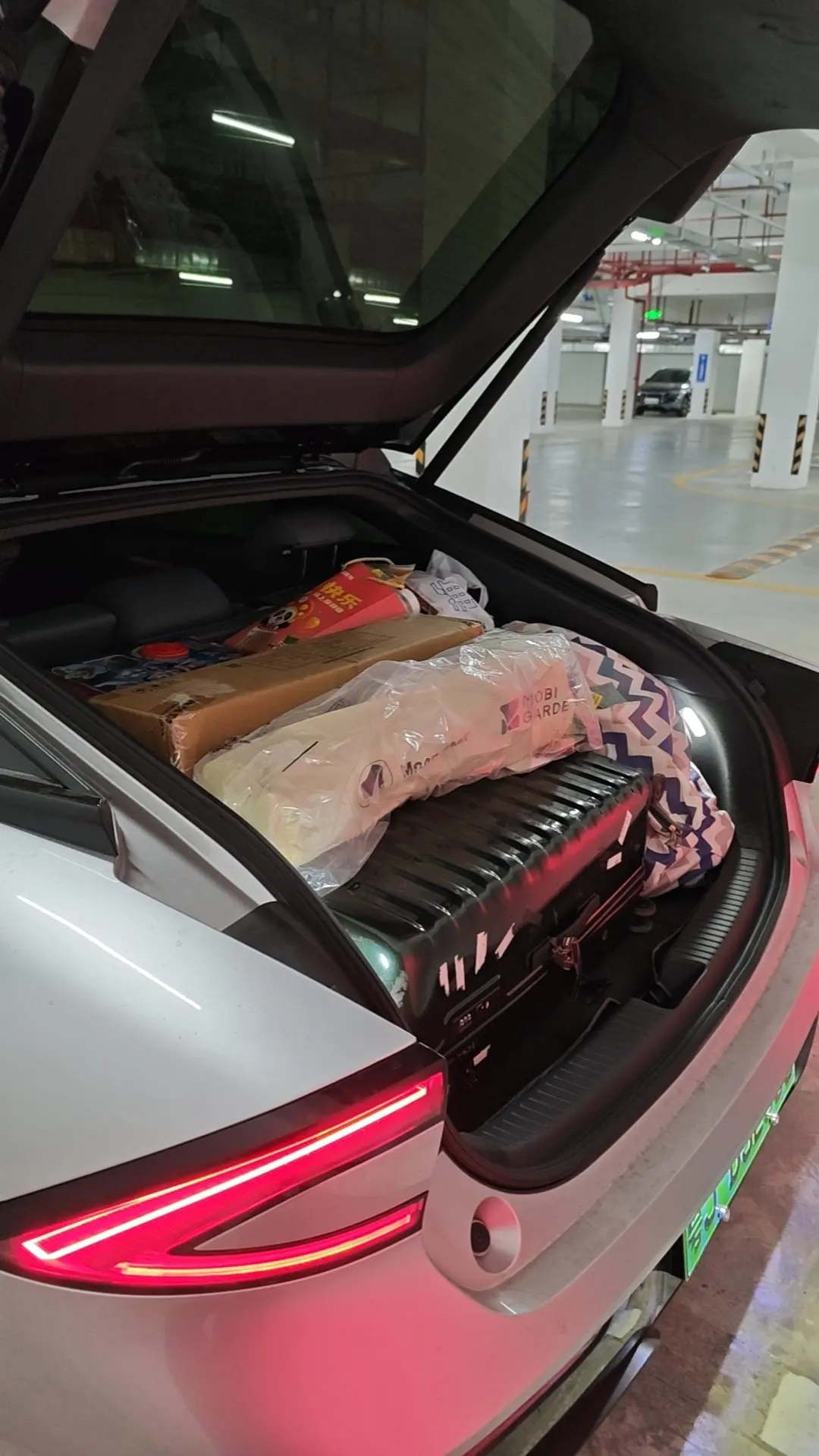 后备箱早就装满待命,里面有周末去采购爸妈爱吃的腊肠、妹妹念叨的坚果礼盒,还有给小侄女准备的毛绒小马玩偶🧸,还有在小鹏商城买的月亮椅。超大储物空间真的绝了,塞满年货还能放下一家人的行李箱,完全不用纠结取舍。