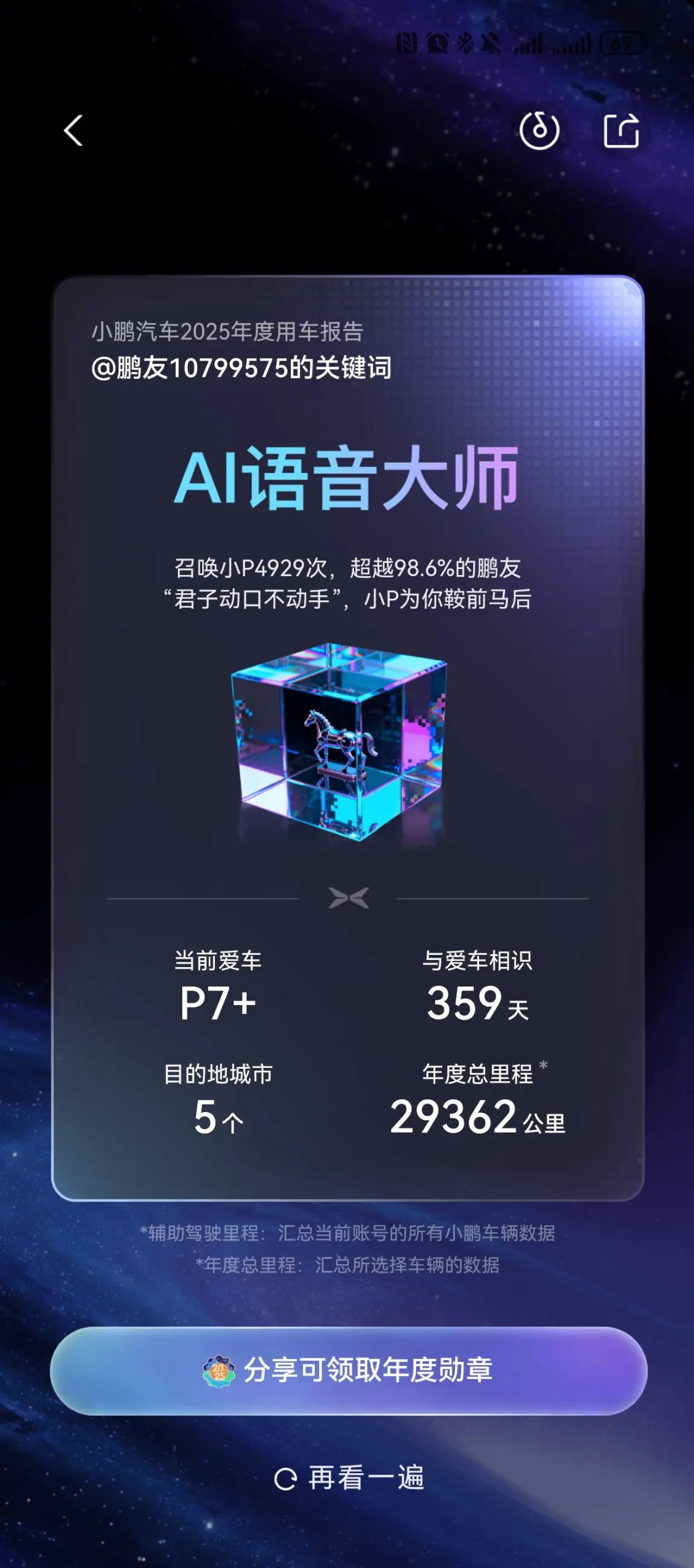 我的2025,与小鹏P7+同行的365天。追过清晨的日出,等过深夜的星空,载过家人的欢笑,也装过独处的宁静。每一段路,每一张图,都是藏在车轮里的独家记忆。#小鹏汽车 #开着小鹏回家过年 #小鹏P7加年度九图
