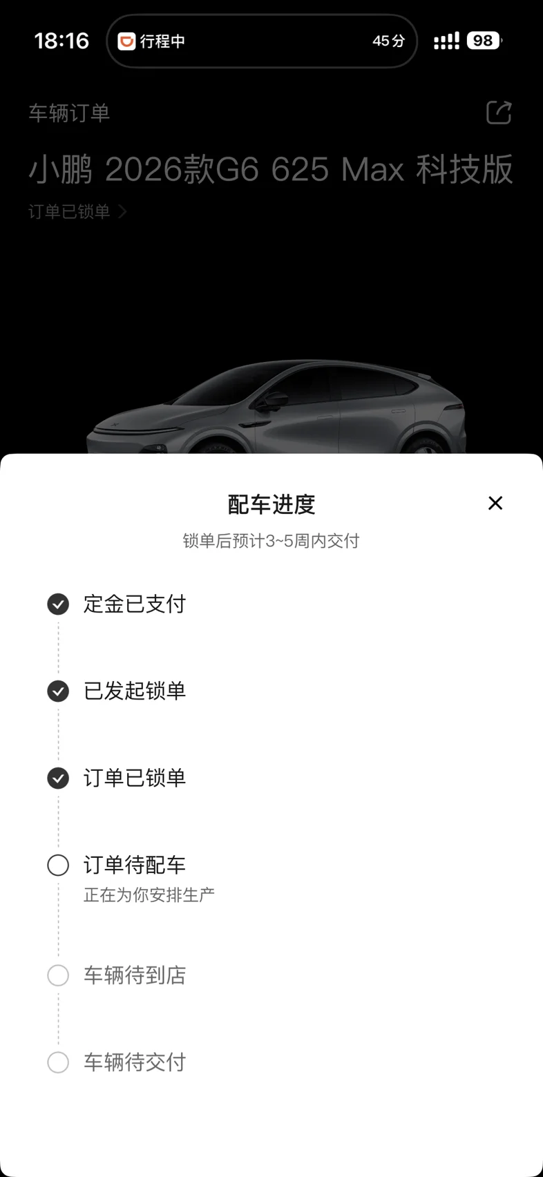 说是3-5周,会提前交付吗?虽然有提醒但还是忍不住每天打开app刷一下