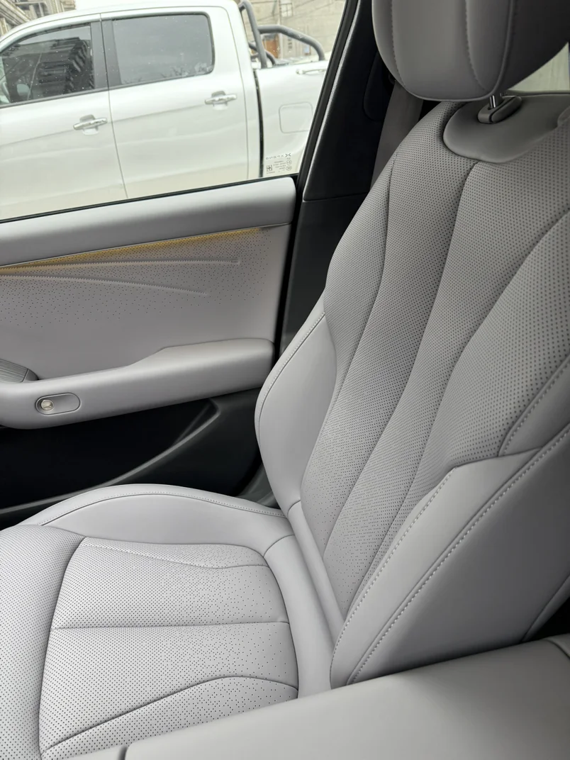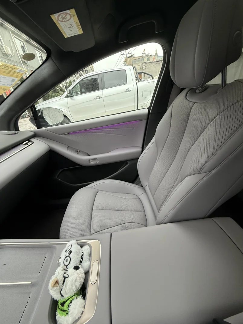 先说结论:车很喜欢,买了之后巴不得天天待在车里。内饰选了紫色,耐脏耐看,外银内紫的搭配越看越舒服。纯电WLTC续航现在是500km,日常通勤+短途自驾完全够用。优点:• 车内空间很大,加上优秀的减震,坐在后排就是一种享受,家人朋友坐了都说舒服;• 外观很帅,颜值直接戳中我,这也是最打动我的一点;• 后备箱空间很能装,自驾露营、日常采购都毫无压力;• 我没额外加芯片,但辅助驾驶已经很好用,特别是自动泊车对新手特别友好,侧方、倒车入库都很稳;• 氛围灯也很好看,晚上开着氛围感拉满,开车心情都变好了。缺点:• 车有点大,5.1米长、2米宽,开很多窄路、老小区、地库都比较费劲,还需要多多磨合一下#我的提车作业#