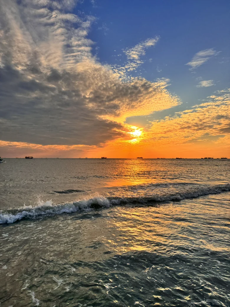 元旦假期,开着小鹏P7加带着宝贝去北海看海。银滩的沙白如雪,细软如棉,绵延数公里的海岸线被阳光镀上金边。海浪轻吻沙滩,落日熔金时,整片海面都浸染在温柔的霞光里。