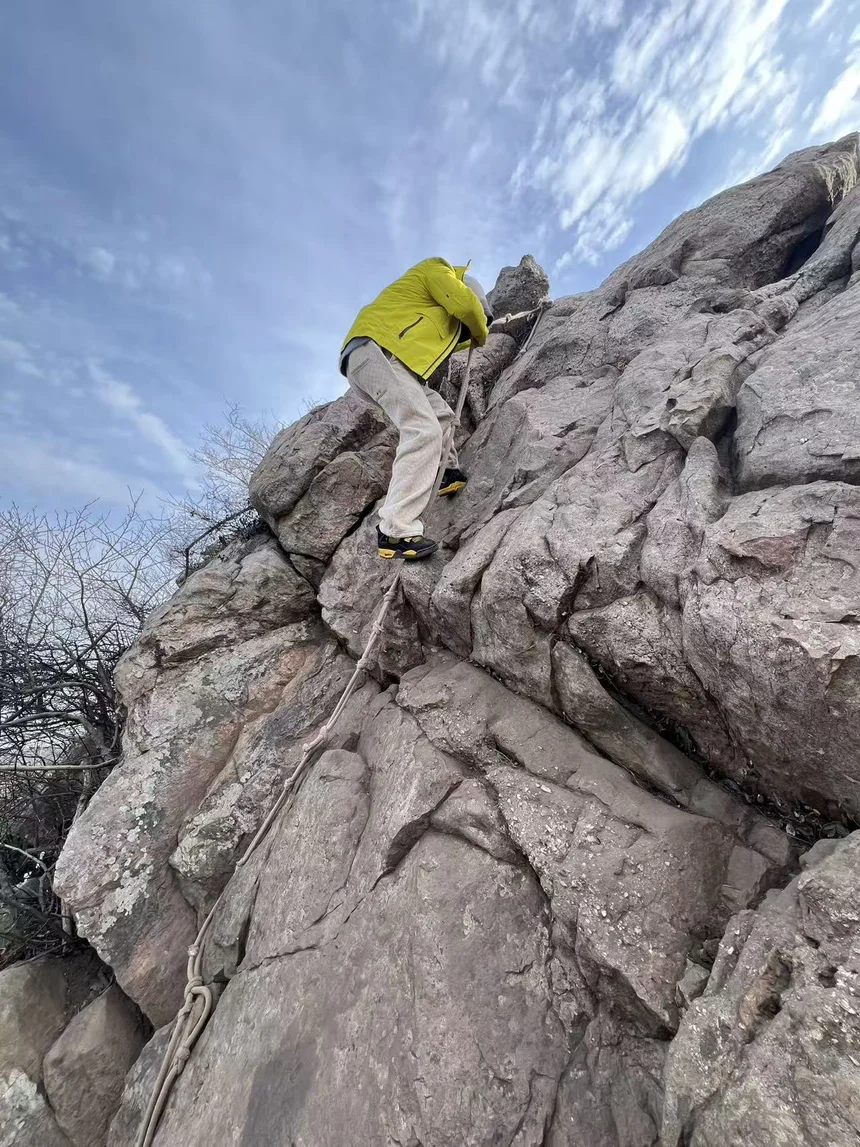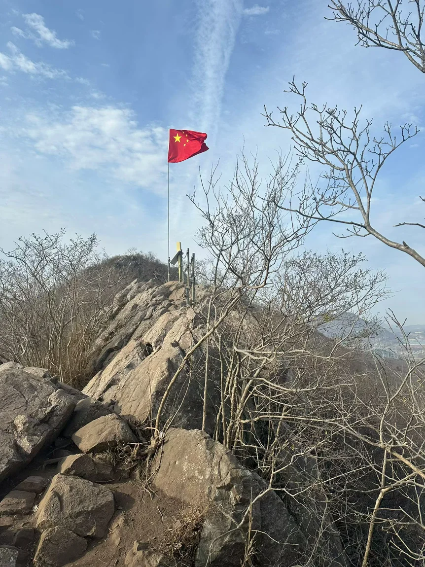 抵达高丽山山脚,沿着野径向上攀爬,最挑战的就是那段近乎垂直的岩壁。借着绳索手脚并用向上挪,手心出汗、腿在发抖,但咬着牙登顶的瞬间,看到山顶国旗迎风飘扬,远处的镇江城尽收眼底,所有疲惫都化作了征服的喜悦。