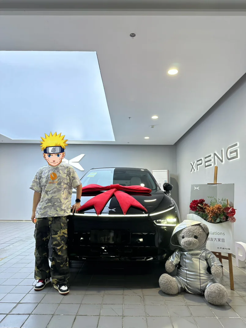 提车当天的仪式感直接拉满💐 交付中心提前布置了鲜花和红色车结,黑色车漆在灯光下泛着细腻光泽,比图片惊艳100倍!专属顾问全程一对一服务,从验车、激活车机到功能讲解都超耐心,连AI代驾和自动泊车都手把手教到会。签完字就冲去拍人车合影,打开无框车门+贯穿式灯带,随手一拍都是大片既视感,还抽中了可爱的小鹏小熊盲盒~