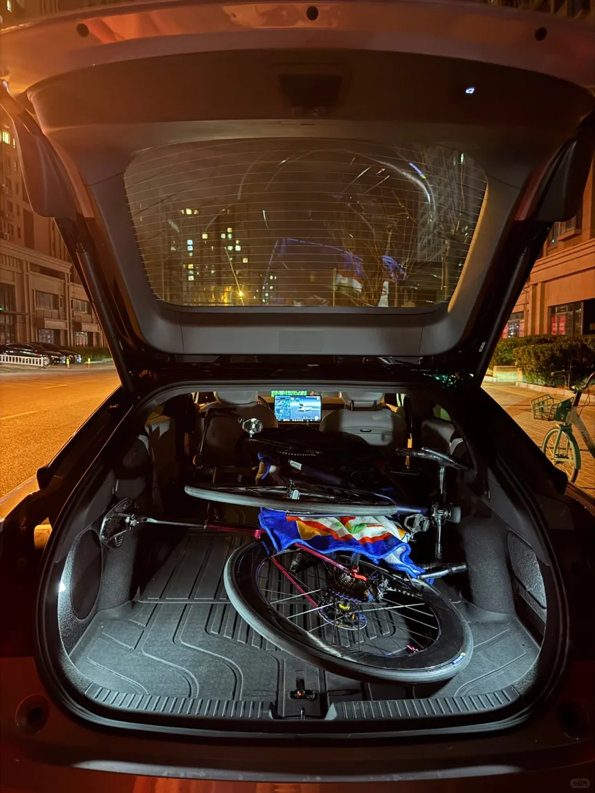 新鲜出炉的运动记录,先夸一下P7+的空间,真的真的真的是太大了,后排放倒,公路车随便放,装两辆轻轻松松,极限一点,三辆都能塞得下,这什么含金量啊,一辆轿车,拉三辆自行车,还能载两个人,真的无敌,赞赞赞!👍🏻👍🏻👍🏻