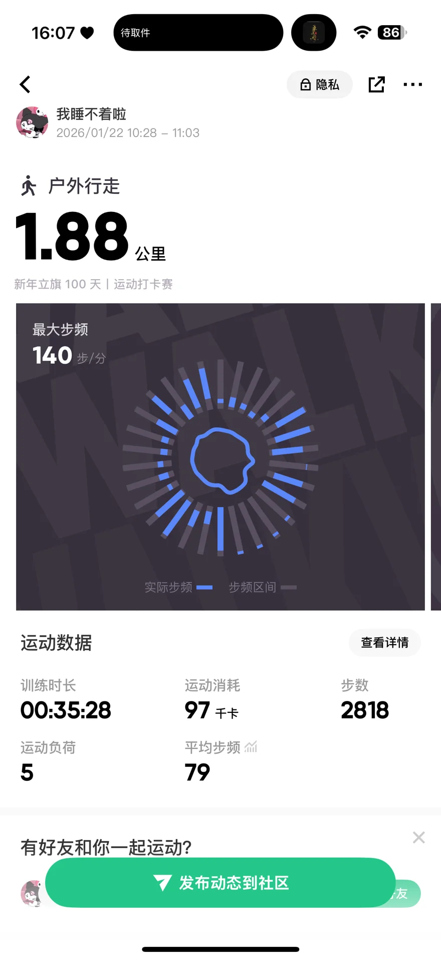零下天气就没有做剧烈运动啦~一直在室内做无氧运动或者室外徒步,每天都有认真坚持运动🤔