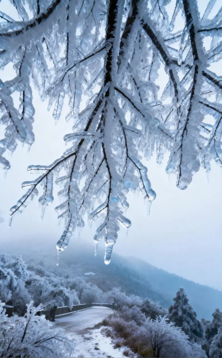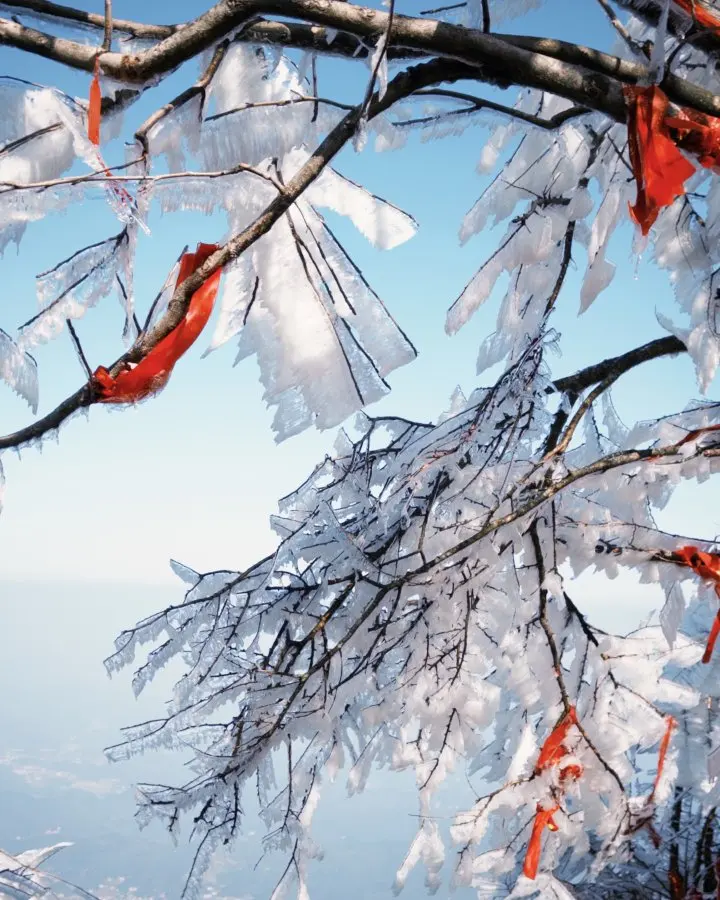南岳衡山这座被誉为“南天独秀”的寿岳,冬日雪落,去偶遇一场雾凇云海,便误入了“回飙吹散五峰雪”的琉璃世界。“晶莹剔透”美不胜收。