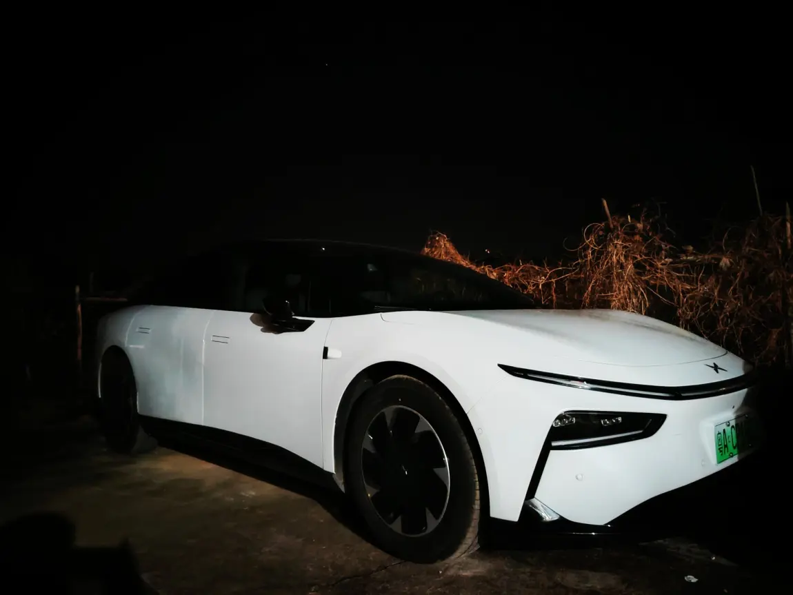 【图3-第一次开车回家过年】25年春节,第一次开我的大白p7+回老家过年。 有车的生活真是方便太多,再也不用大包小包去挤大巴,行李不管有多少往超级大的后备箱一扔,嘿嘿通通搞定。广州到新丰,往返400公里,一个来回电量稳稳的都不用充电。最喜欢在老家拍的这张照,夜幕下的p7+,白车身搭配黑悬浮顶,怎么看都帅,超级有feel。