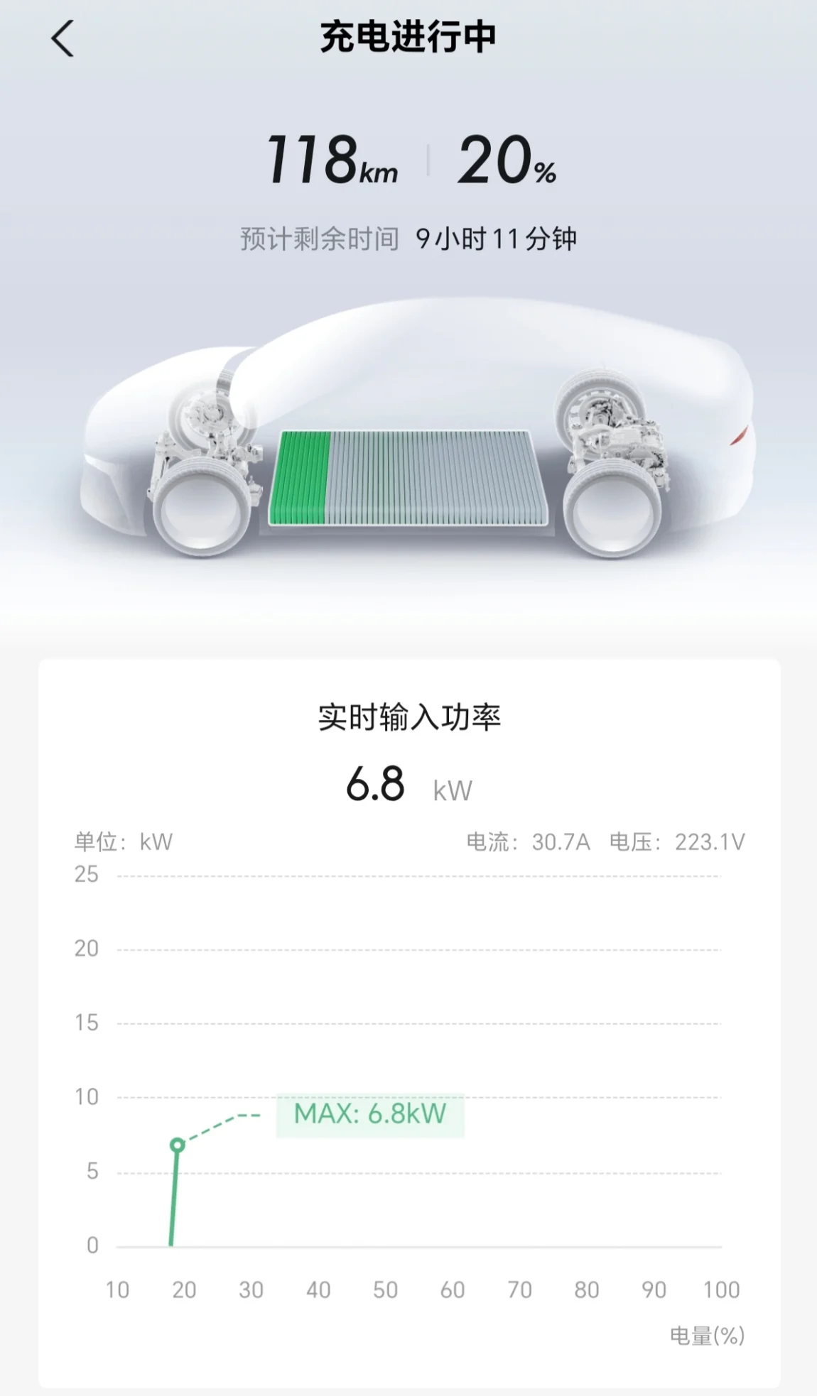 【图6-图7-第一次凌晨充电和慢充】有了电车之后,慢慢也成了精打细算的电动车主,好吧慢慢变抠门了😀。自从第一次体验过凌晨6毛的电费后,再也回不去白天一块多的电了。于是开始喜欢早起,凌晨去充电,空气又好,安静又省钱😀。听车友说磷酸铁锂得偶尔慢充校准,特意找了邻居老P7车主的共享桩,让我的大白第一次也吃上了细粮。