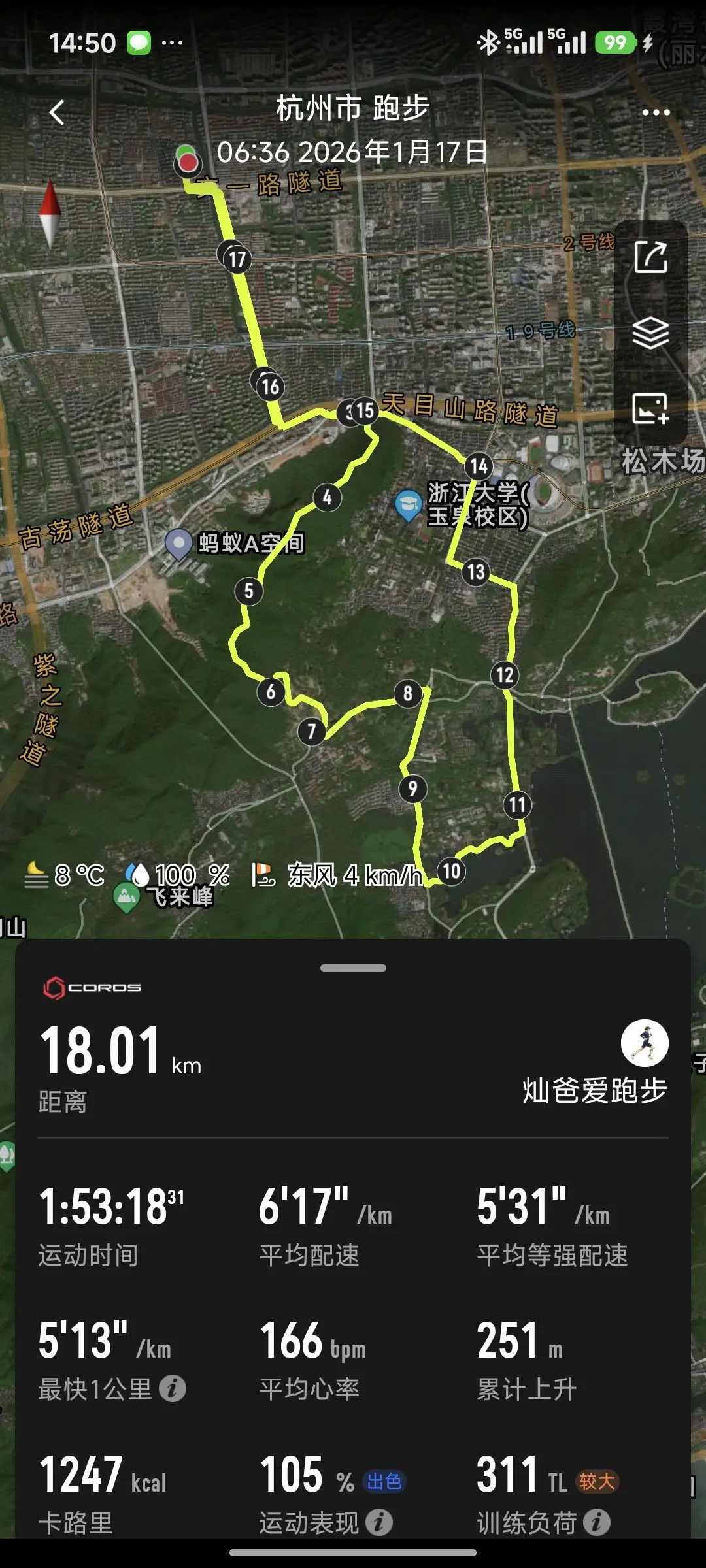 杭州常规跑步线路:老和山-植物园-龙井路-杨公堤-浙大玉泉