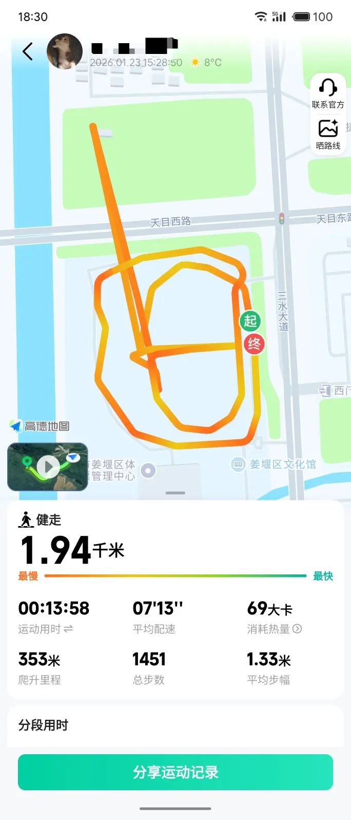 #马年运动挑战# 运动所在城市:江苏泰州运动方式:健走运动里程:1.94公里因为靠近我们这的体育公园比较近,所以经常会来这走两圈舒展一下,以前来这里跑个三圈都不带喘气的,自从年纪上来了,走个两圈都感觉气喘吁吁的,除了感慨年轻真好,还是得平时保持运动才是最重要的。