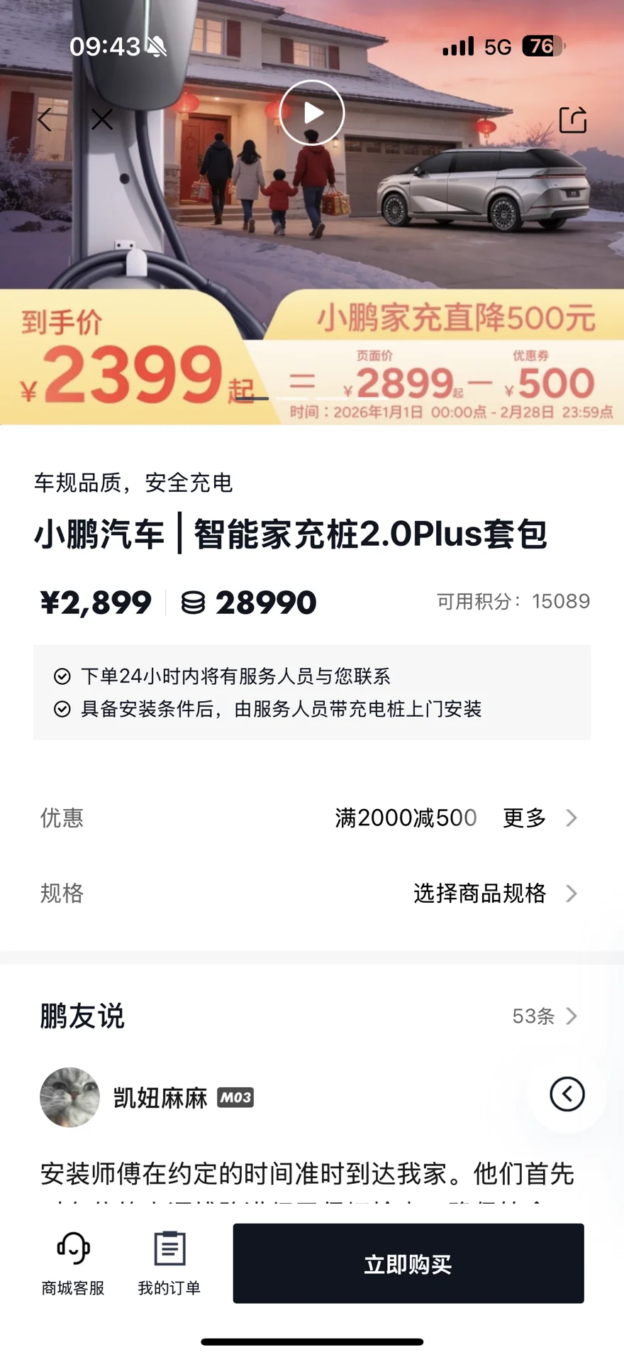 #我的提车作业# 提车当天是中午过去的,工作人员也非常贴心的主动询问我是否需要吃午餐,全程都有提供点心与茶水。由于我是新手第一次买电车,很多流程的问题不太明白,也很恐慌错过国补。还在小哥非常耐心的为我解答提车注意事项,并为我安排好了后续的流程和规划。小鹏真的不错,积分可以用来兑换充电桩,我也不用再自费购买。我还发现了商城还有我心仪的其他产品也可以积分兑换,非常好。提完车已经接近晚上,提车中心也为我们很贴心的准备了晚餐盒饭。然后我就开开心心的开着新车回家啦!